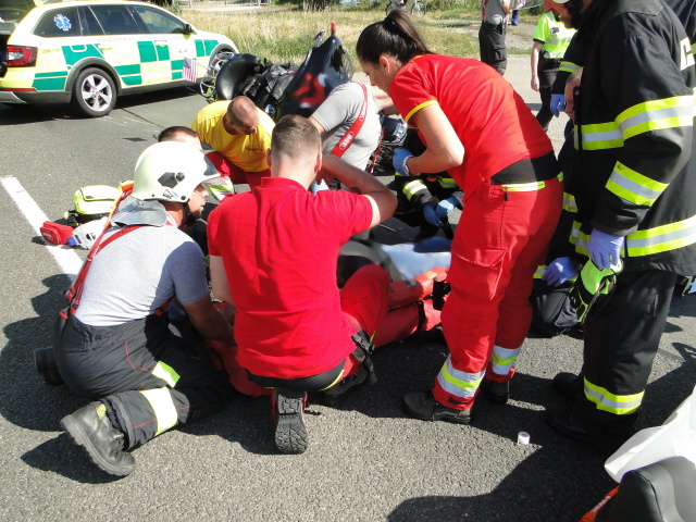 Dopravní nehoda motocyklu a osobního vozidla zaměstnala opět profesionální jednotku ze stanice Hradec Králové – Pražská a dobrovolné hasiče z Nechanic. Ke střetu došlo na silnici č. 11. Hasiči asistovali záchranářům při zajišťování zraněného člověka z motocyklu, na místě zasahoval také vrtulník LZS.
