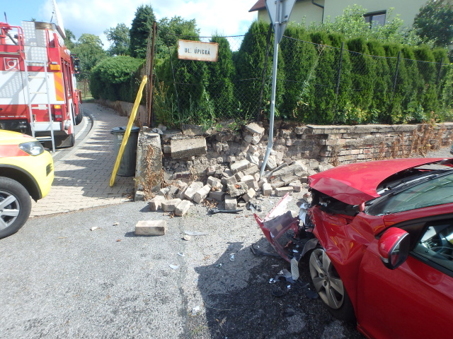 V Úpické ulici došlo k dopravní nehodě osobního vozidla, které narazilo do zdi. Na místo spěchali profesionální hasiči z Trutnova a dobrovolná jednotka z Úpice. Osobu ve voze zdravotničtí záchranáři stabilizovali, následně byla vyproštěna pomocí páteřové desky a hasiči ji předali do péče zdravotnické záchranné služby. Po došetření nehody pomohli hasiči s naložením vozidla na odtah.