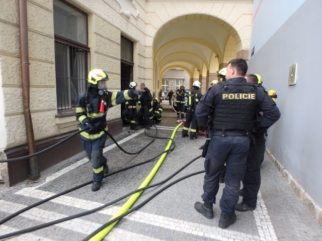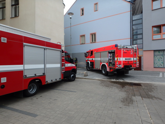V Jugoslávské ulici pomáhali profesionální a dobrovolní hasiči s nouzovým otevřením dveří bytu a následným transportem osoby do zdravotnického zařízení.