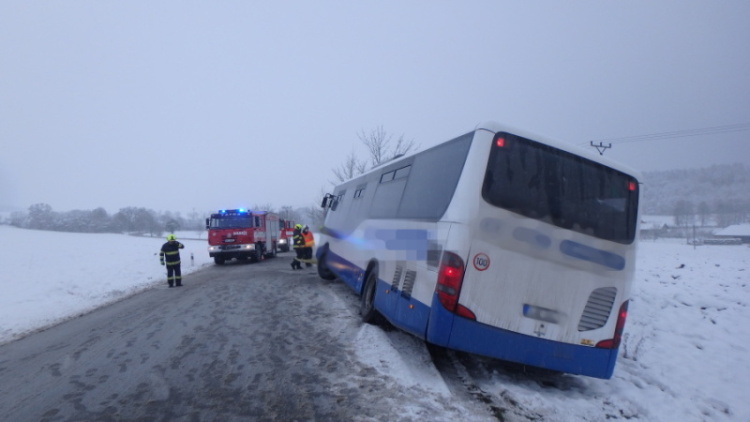 V části Kostelecká Lhota pomohly jednotky požární ochrany s vyproštěním uvízlého autobusu, který hrozil pádem do příkopu. Komunikace musela být po dobu vyprošťovacích prací uzavřena. Autobus byl prázdný, nikdo nebyl zraněn.