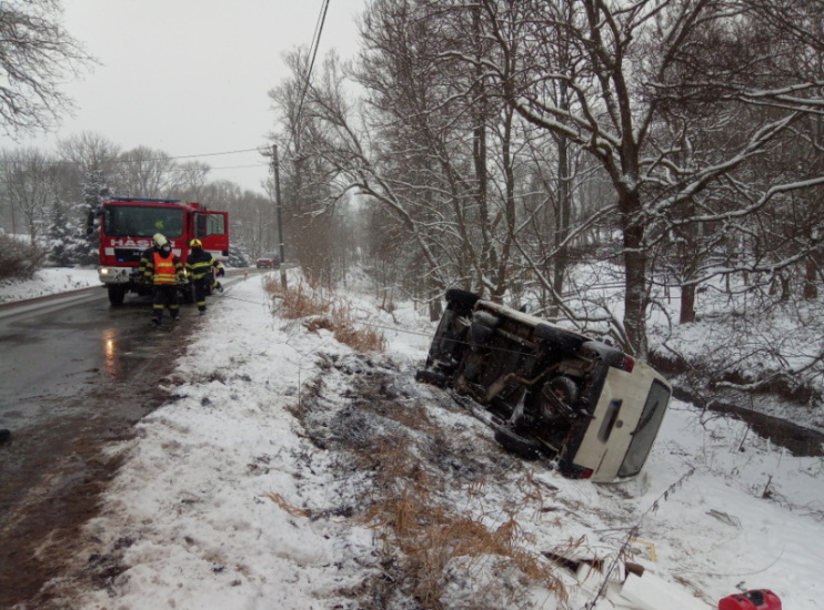 K dopravní nehodě osobního vozidla, které vyjelo mimo komunikaci do příkopu, vyjížděli profesionální hasiči z Jičína. Zdravotnická záchranná služba se postarala o zraněného řidiče. Hasiči zajistili místo nehody, odpojili u auta akumulátor a předala místo zásahu policistům.