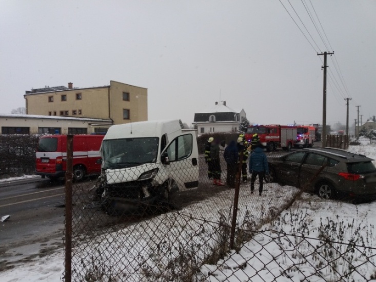 V části Komárov havarovala dvě osobní vozidla, k nehodě vyjeli profesionální hasiči ze stanice Dvůr Králové nad Labem. Dva lidé byli předáni do péče zdravotnické záchranné služby. Jedno z aut skončilo mimo vozovku v příkopu, druhé tvořilo překážku na komunikaci. Hasiči zajistili místo nehody, jedno vozidlo odstranili mimo komunikaci, druhé pomohli naložit na odtah.
