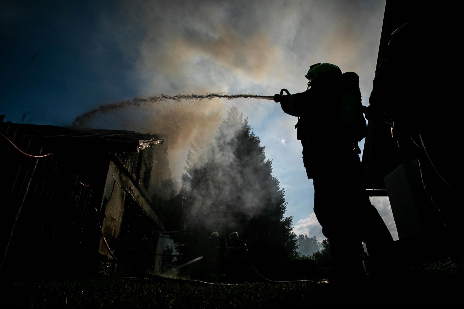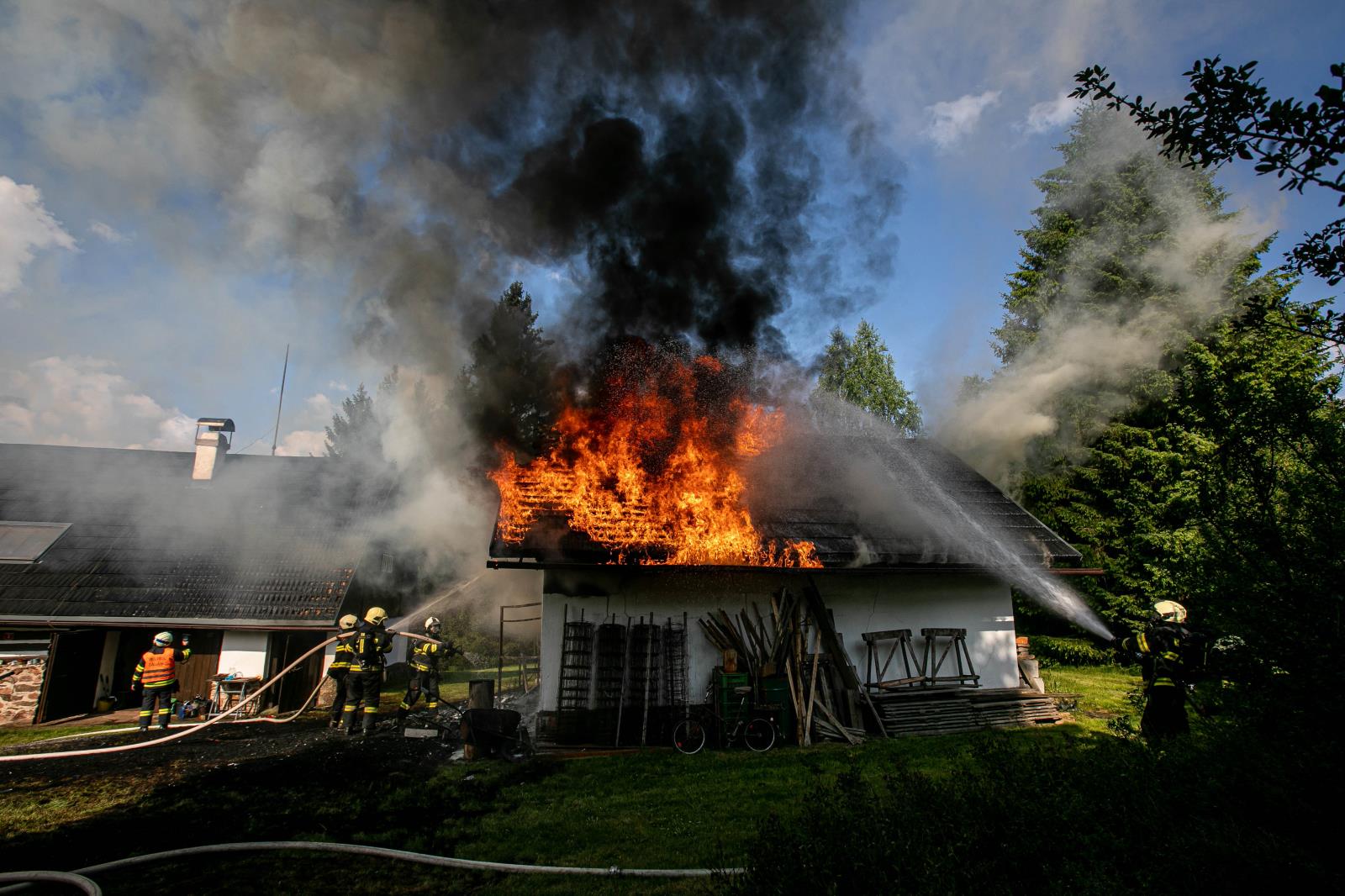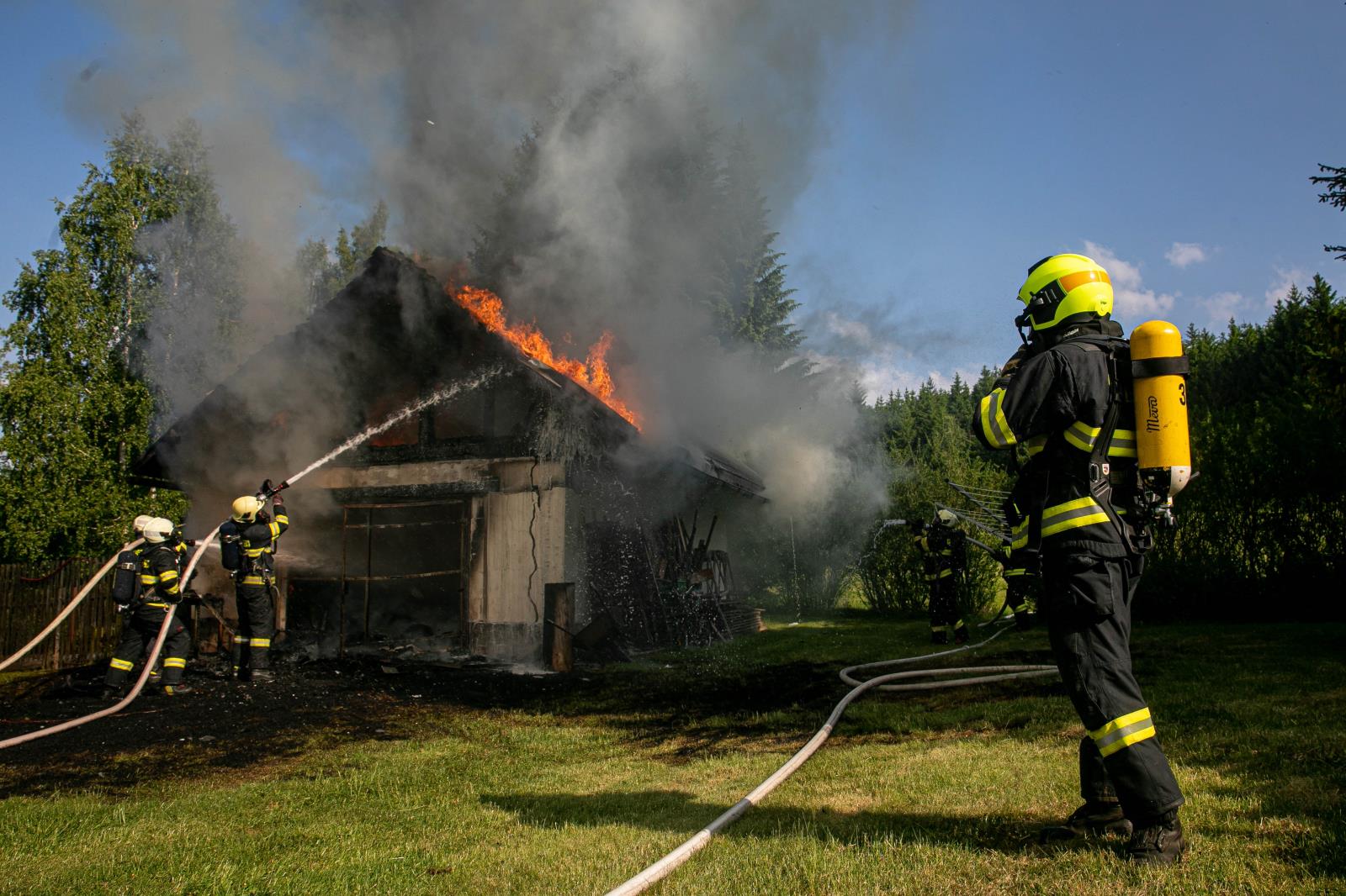 Sedm jednotek hasičů vyslal operační důstojník k ohlášenému požáru garáže u rodinného domu v části Krahulčí, vyhlášen byl druhý stupeň požárního poplachu. Při příjezdu hasičů na místo události už prostupovaly plameny střechou objektu ven. Hasiči se soustředili nejen na samotnou likvidaci požáru, ale také se snažili uchránit před ohněm sousední chalupu, což se jim nakonec podařilo.