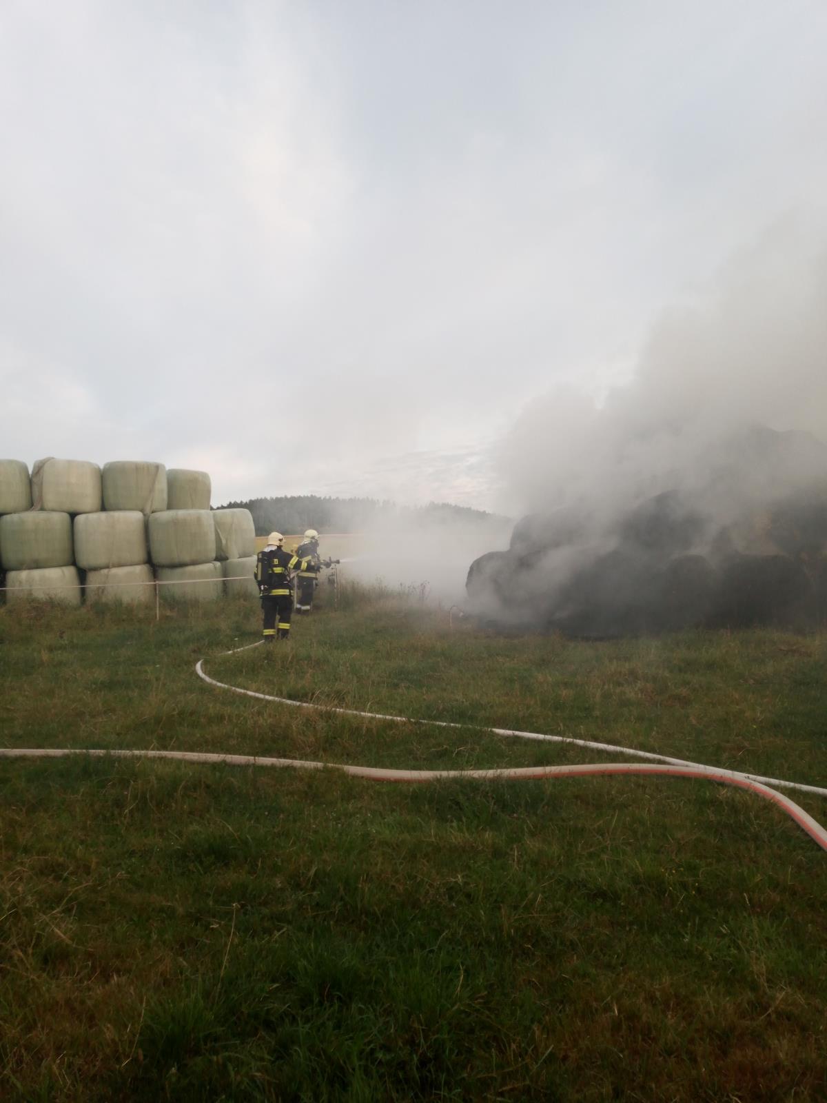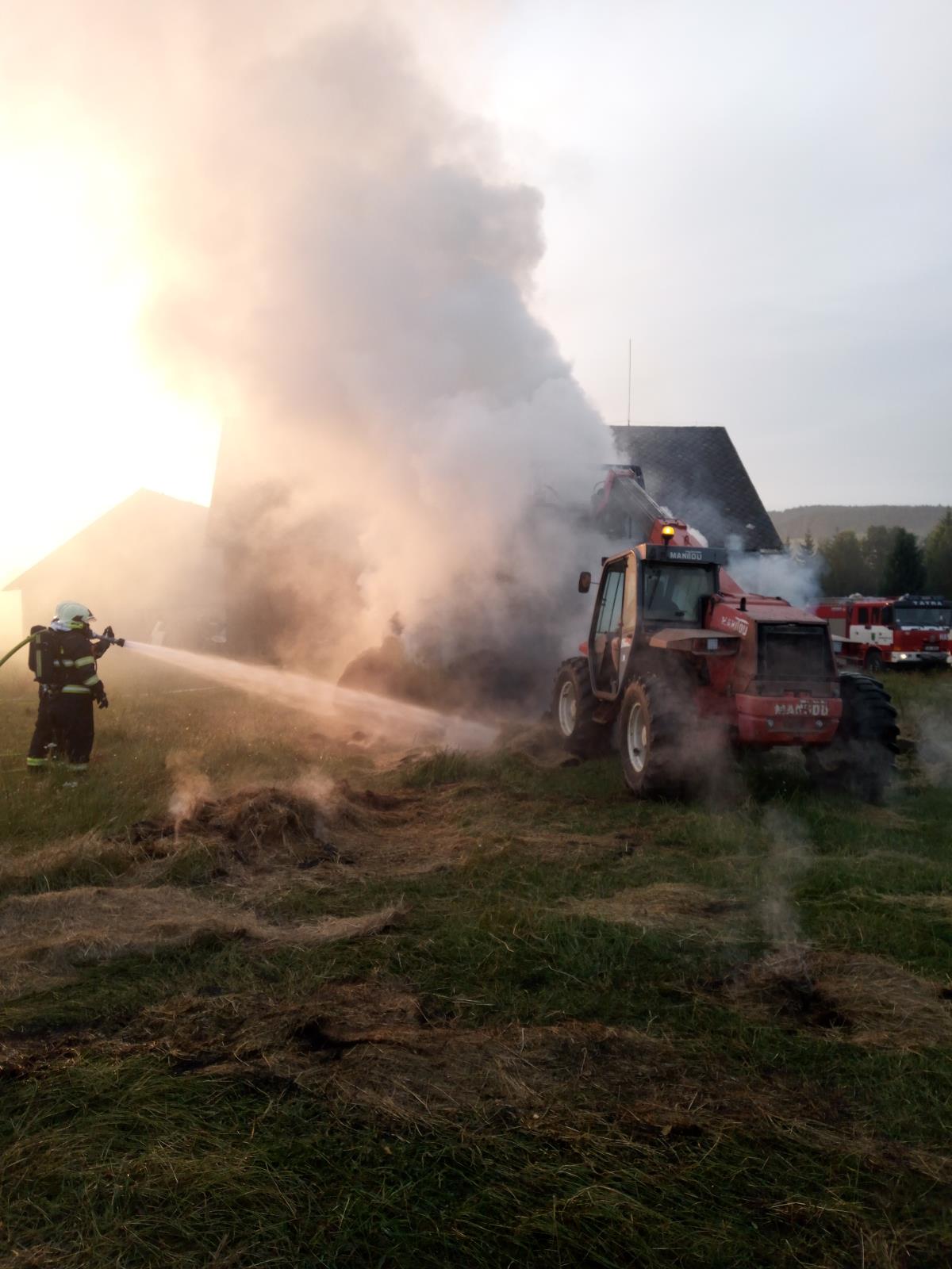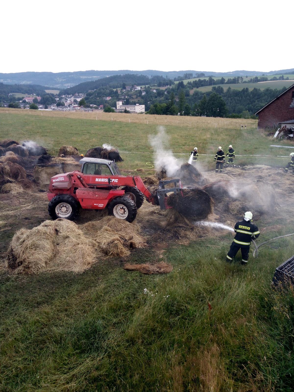 Nad ránem vyjely jednotky hasičů z druhého stupně požárního poplachu k nahlášenému požáru stohu balíků (cca 100 ks) do obce Havlovice. Stoh byl postupně rozebrán na jednotlivé balíky pomocí manipulační techniky. Poté byly balíky jednotlivě uhašeny. Požár vznikl cca 3 metry od obydlí, které nebylo požárem zasaženo. Uchráněn byl také vedlejší přilehlý stoh. Velitel oznámil likvidaci požáru v 9:06h. Na místo se dostavila vyšetřovatelka příčin požáru. Příčina vzniku požáru je pravděpodobně samovznícení sena v důsledku zaplachtování stohu.