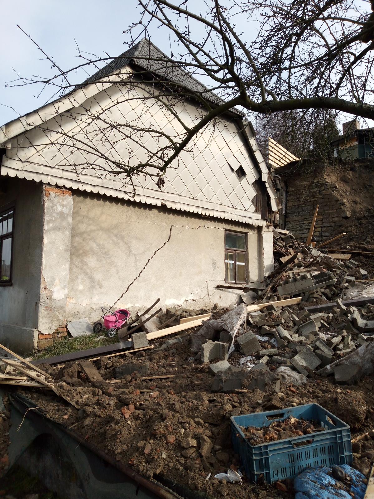Sesunutá opěrná zeď a půda poškodily rodinný dům