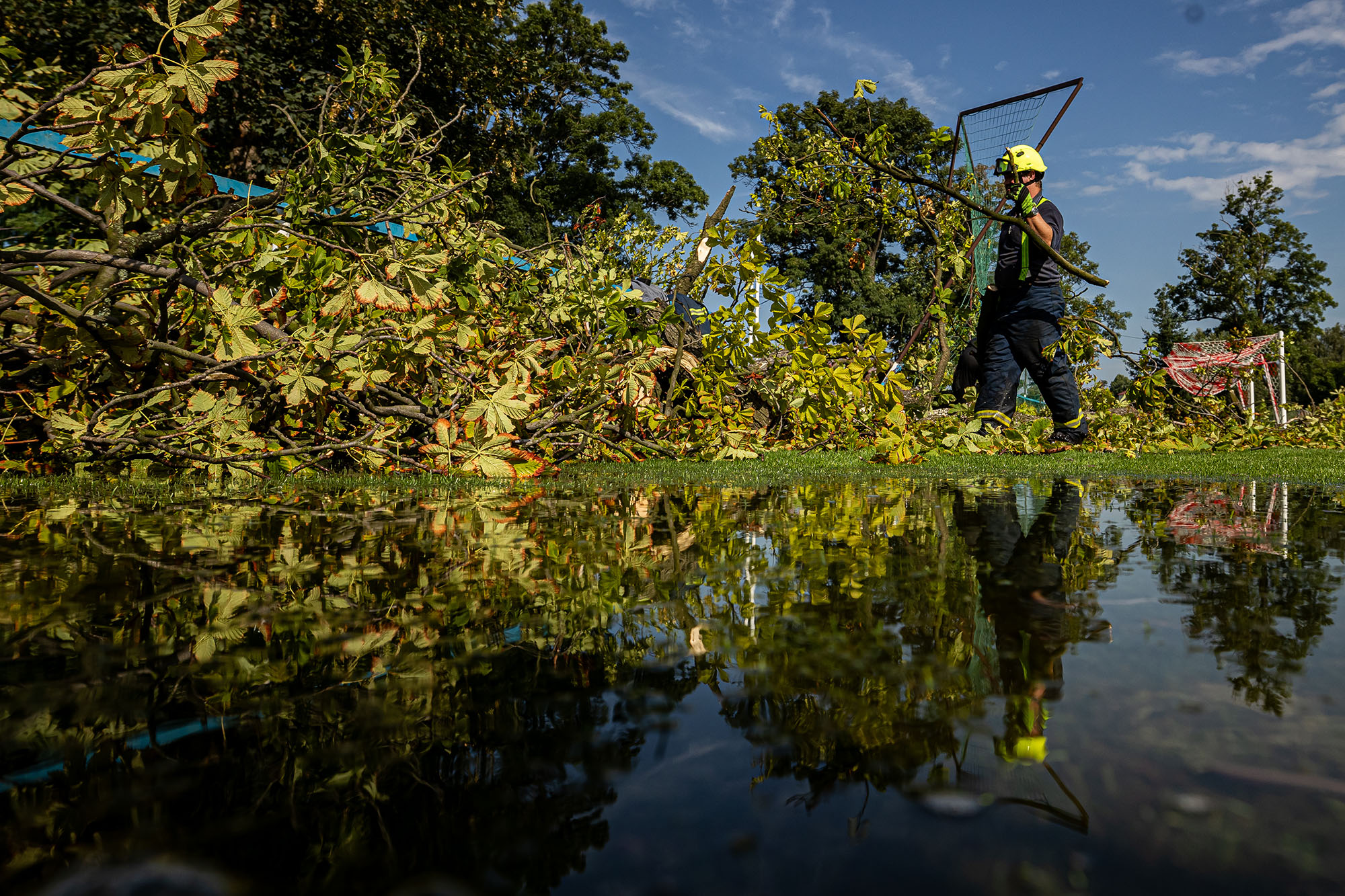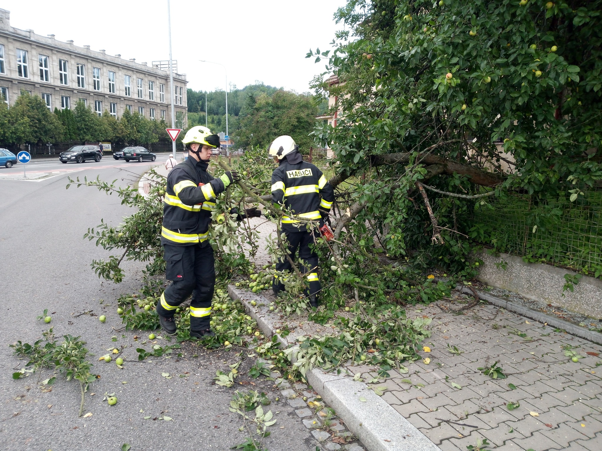 K 8. hodině evidujeme další události v souvislosti s nočními srážkami. Jedná se především o čerpání vody ze sklepů (Vysokov, Jaroměř), kanceláří a skladu (Česká Skalice). V Náchodě pomáháme s průmyslovým vysavačem při odstranění vody ze sklepních prostor mateřské školy. V Novém Bydžově odstraňujeme 2 vzrostlé stromy z objektu garáží.