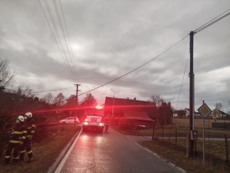 Profesionální jednotka z Jaroměře a JSDH Slatina nad Úpou pomohli se zajištěním místa, kde došlo k pádu sloupu s telekomunikačním vedením.