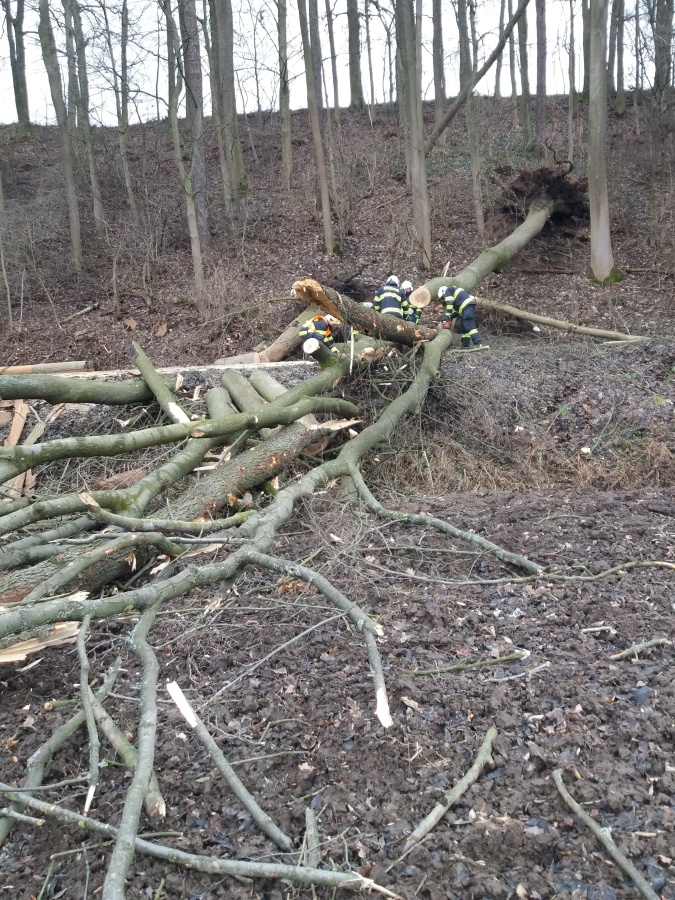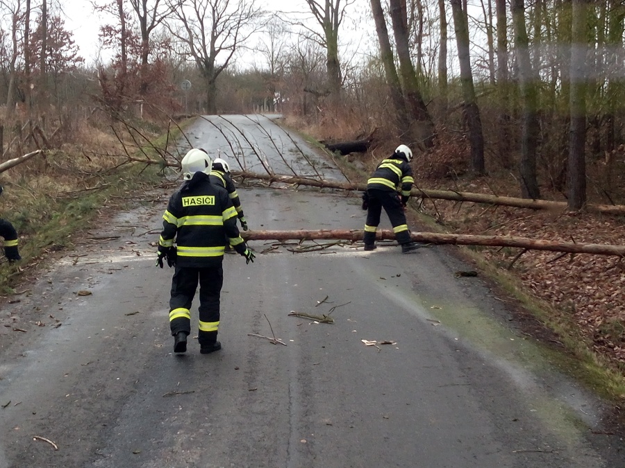 Silný vítr zaměstnal profesionální a dobrovolné hasiče na celou neděli