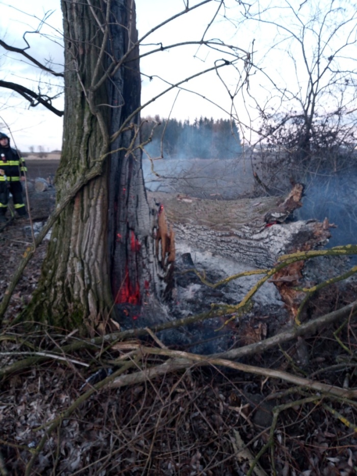 Požár doutnajícího stromu po předchozím kácení a pálení likvidovali profesionální hasiči z Dobrušky a JSDH Opočno a Očelice.