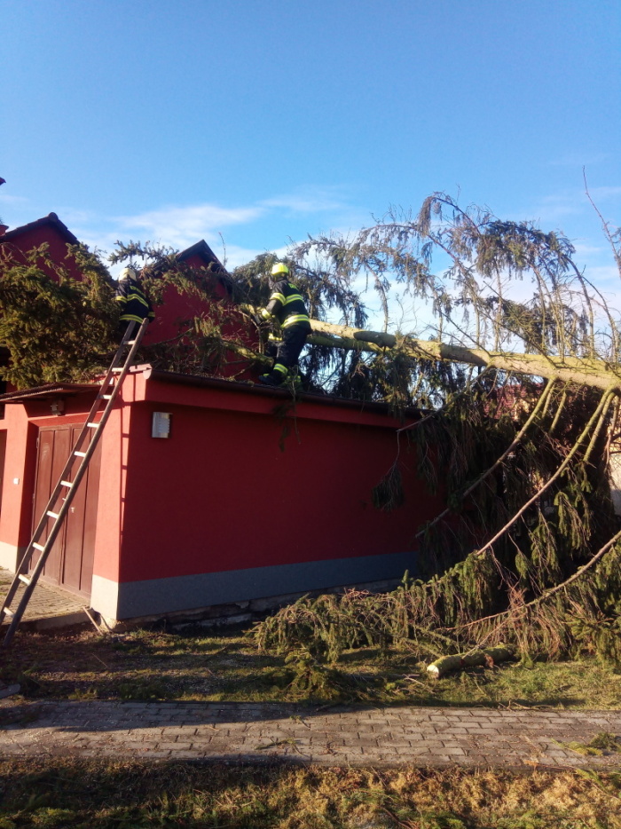 V Dobrušce zajistili hasiči uvolněný vikýř, v Česticích pak shrnutý plech na střeše. V Albrechticích nad Orlicí odstranila místní dobrovolná jednotka strom spadlý na altánek.