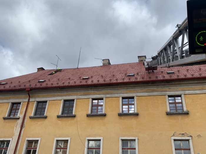 Zabezpečení poškozené střechy v Jičíně (ul. Butovská).