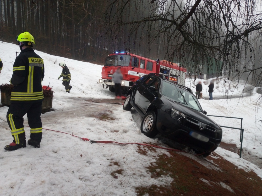 Profesionální hasiči ze stanice Trutnov vyprostili ve spolupráci s JSDH Horní Maršov vozidlo, u kterého hrozilo nebezpečí pádu.