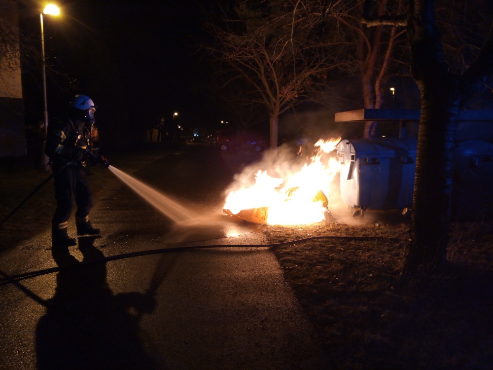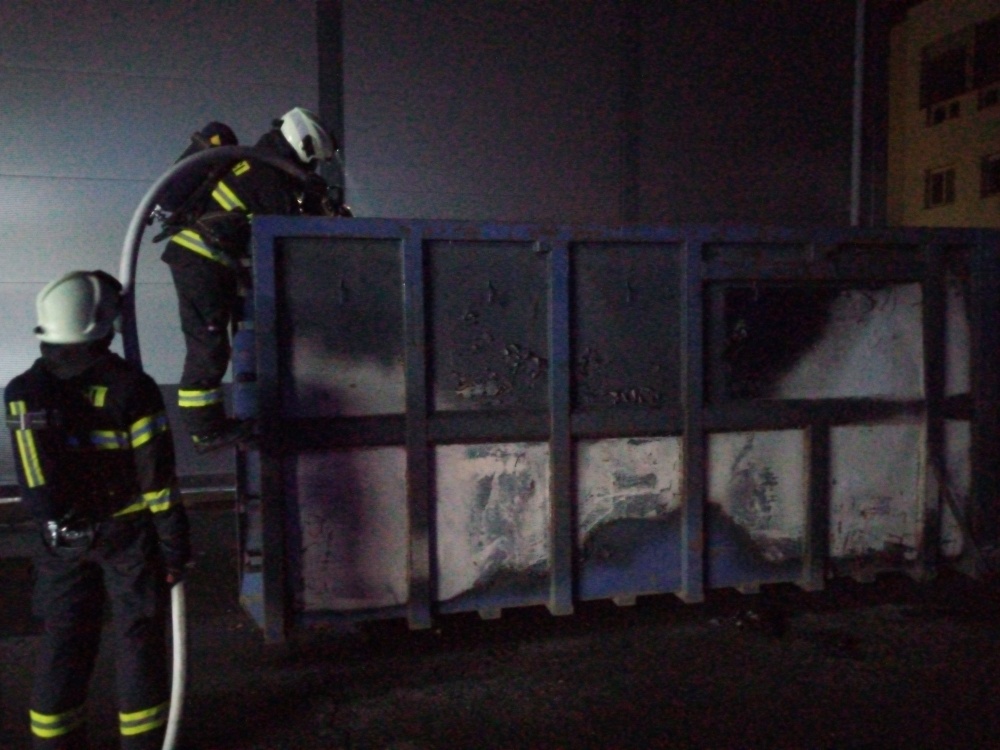 V části Březhrad hasila profesionální jednotka z centrální stanice Hradec Králové požár velkoobjemového kontejneru.