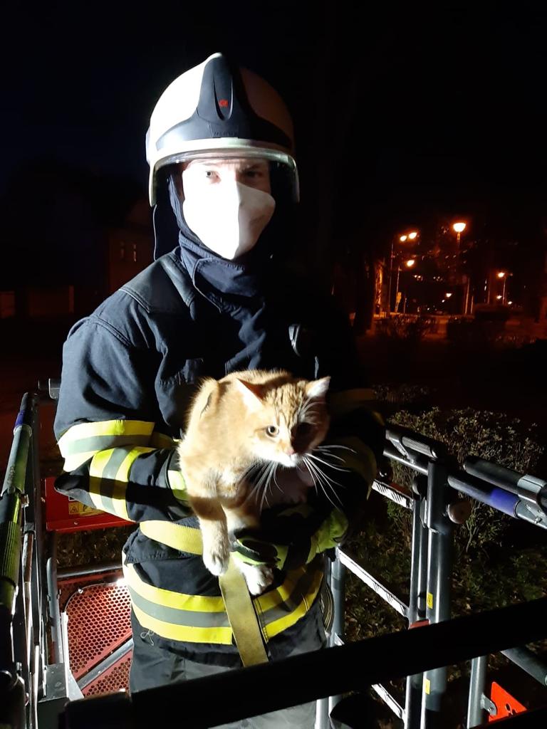 Na Svatováclavském náměstí v Hradci Králové zachraňovali profesionální hasiči z centrální stanice kočku, která se krčila v asi 13m výšce, bála se, držela se větve a nemohla sama dolů. Hasiči se ke zvířeti dostali pomocí automobilového žebříku a lezecké techniky. Podařilo se jim kočku odchytit, za což byli od kolemjdoucích lidí odměněni potleskem. Zvíře bylo v pořádku.