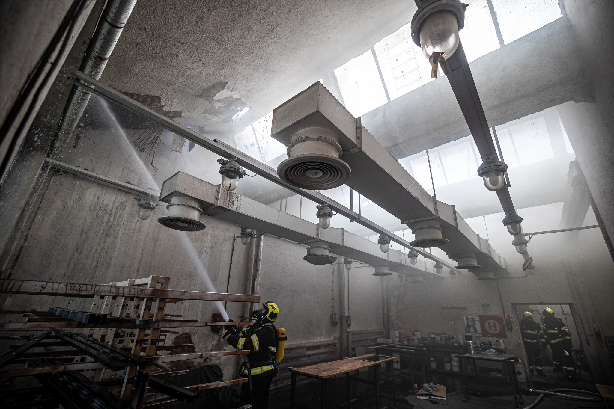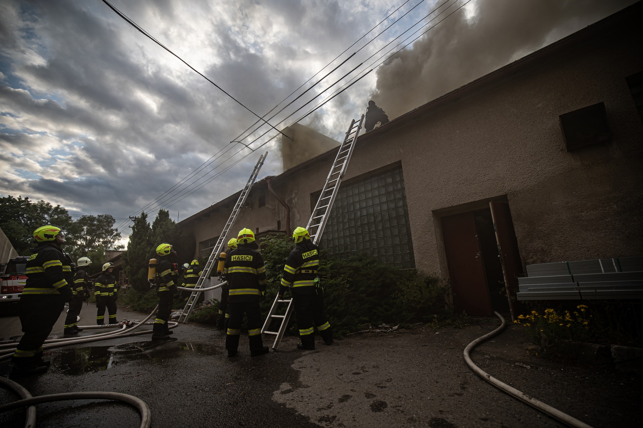 Průzkumem hasiči zjistili, že se jedná o rozsáhlý objekt dlouhý několik desítek metrů, ve vnitřním prostoru se nachází různé provozy (např. truhlárna, lakovna). Požár se šířil pod střechou, nakonec byla zasažena plocha asi 5x7 m. Hasiči museli rozebrat části střešní konstrukce, aby požár lokalizovali. Objekt musel být odpojený od elektřiny, na střeše se nacházela fotovoltaika. Byla nutná i další spolupráce s energetiky, asi 1,5 m nad střechou totiž vede elektrické vedení.