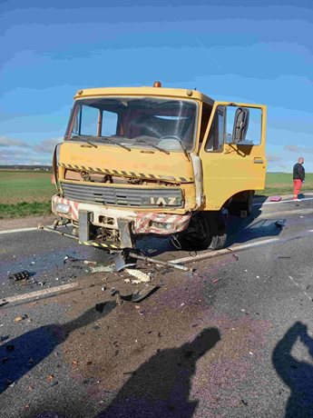 Srážka osobního a nákladního vozu si vyžádala vážné zranění, pomáhal i vrtulník