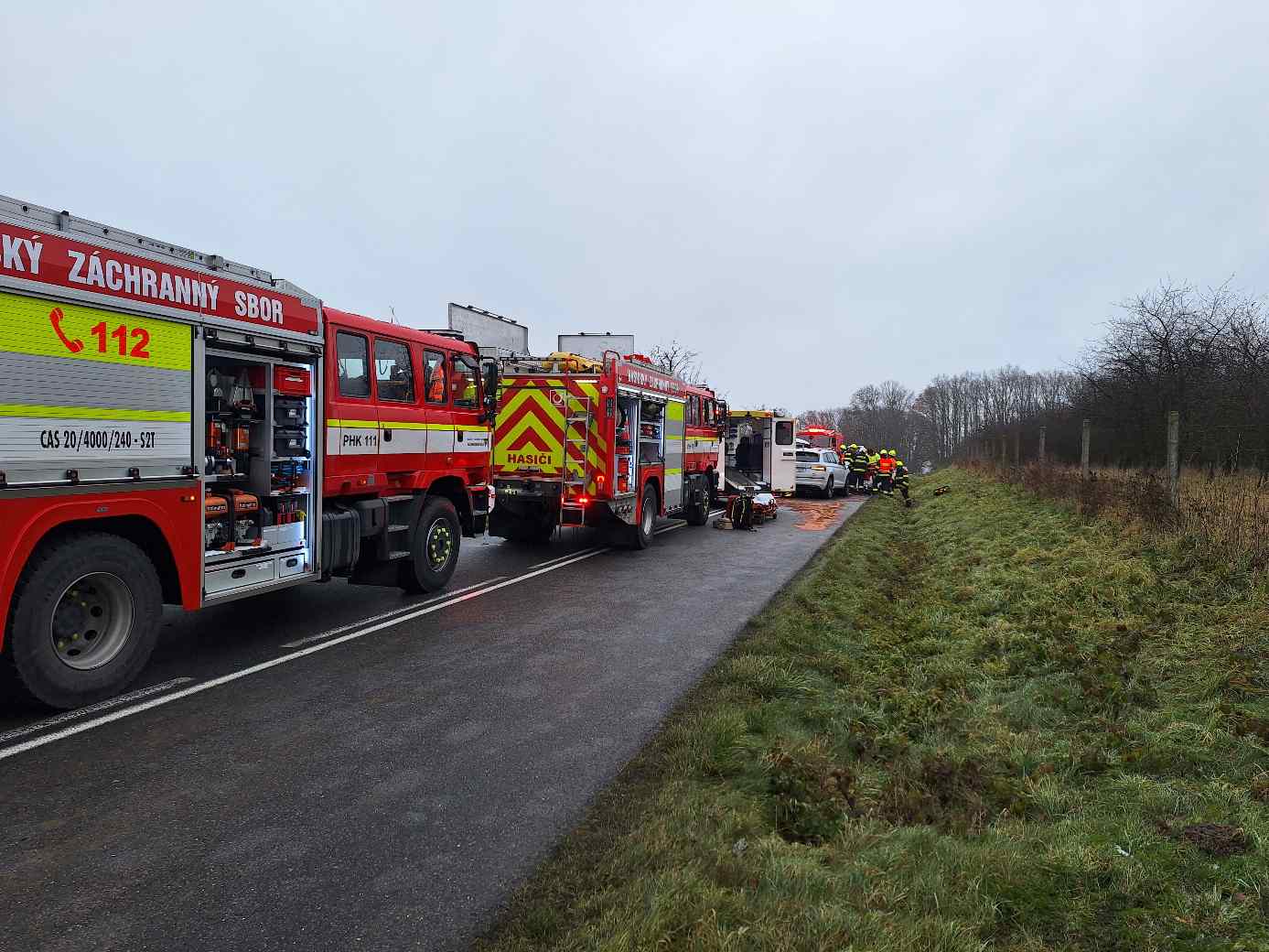 Hasiči mezitím zajistili místo nehody, provedli protipožární opatření a zaměřili se na únik provozních kapalin. Část oleje a dalších látek stihla odtéct do příkopu, proto byl na místo přivolán odbor životního prostředí, který posoudil riziko kontaminace. Komunikace musela být během zásahu zcela uzavřena.