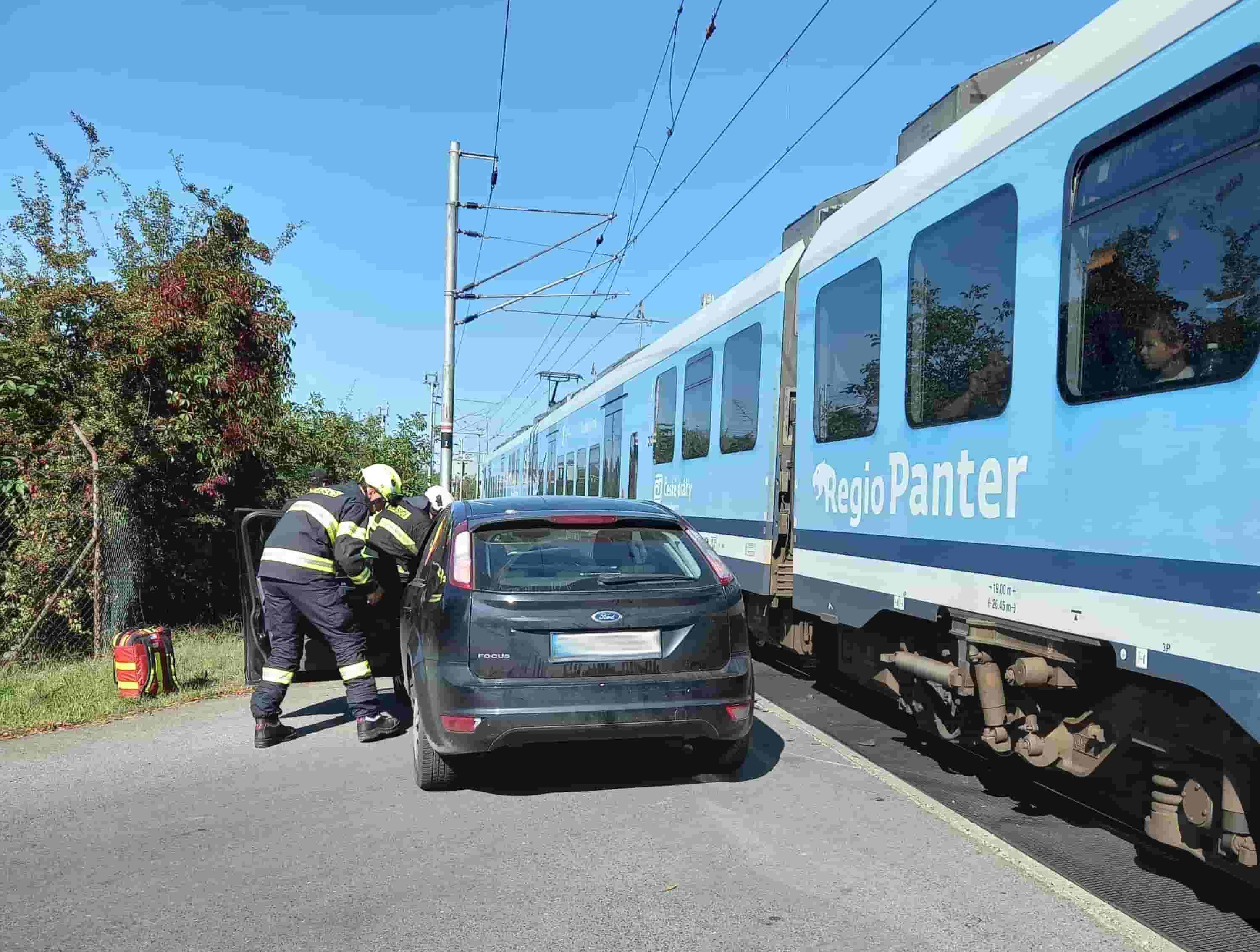 Srážka vlaku s automobilem zablokovala trať, hasiči evakuovali desítky cestujících