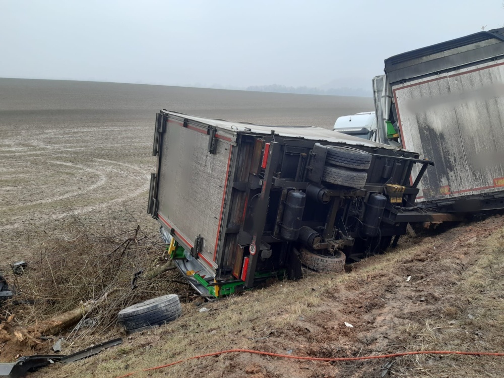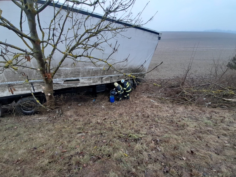 Ohaveč – dopravní nehoda – 17. 2. 09:54 Jeden nákladní vůz a osobní automobil skončily mimo komunikaci, druhý náklaďák zůstal stát...