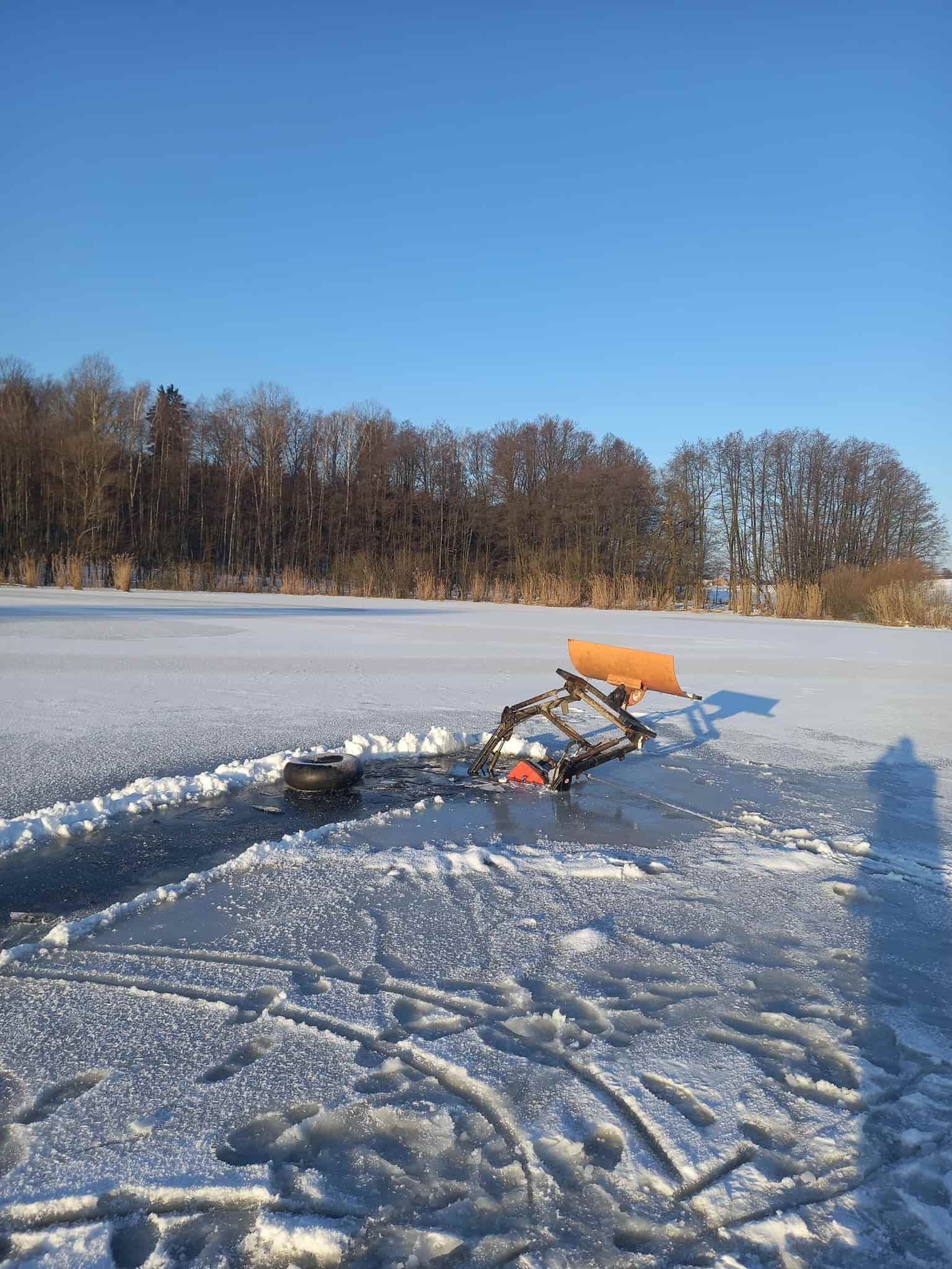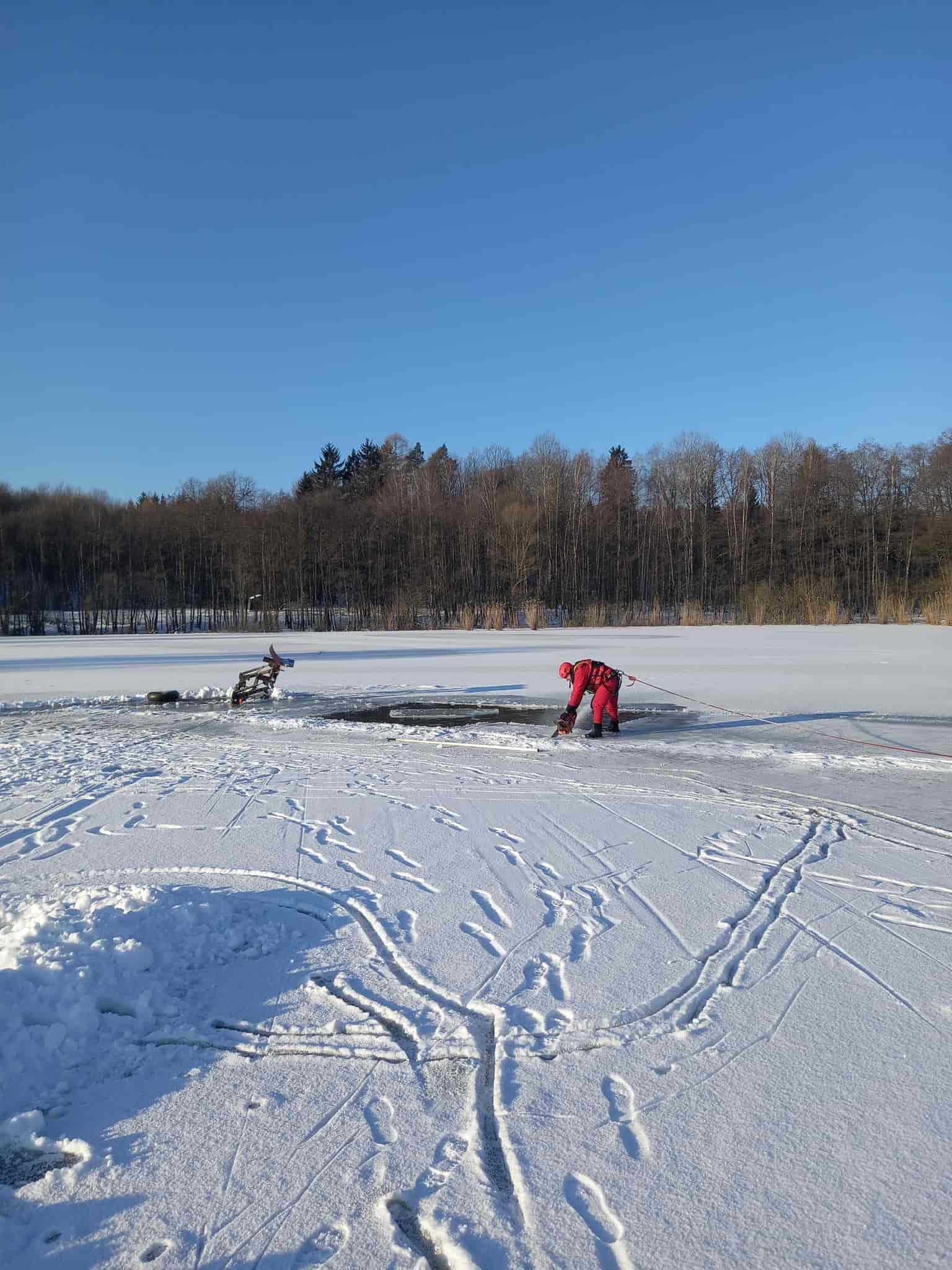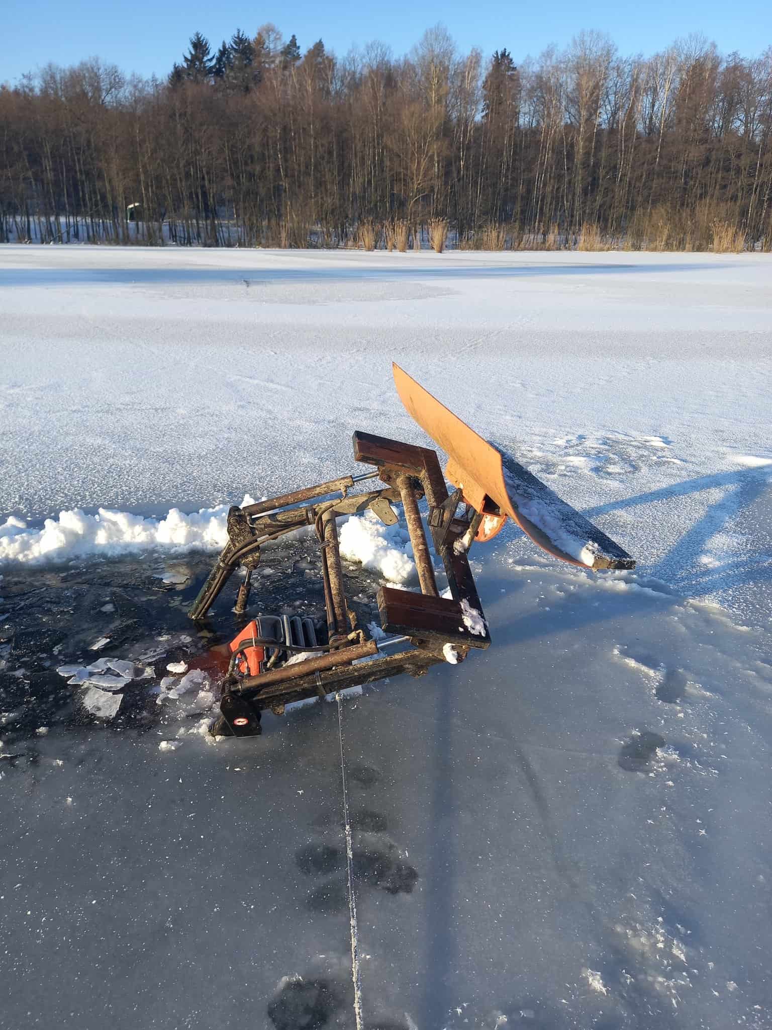 Traktor se propadl ledem a vyžádal si zásah hasičů potápěčů