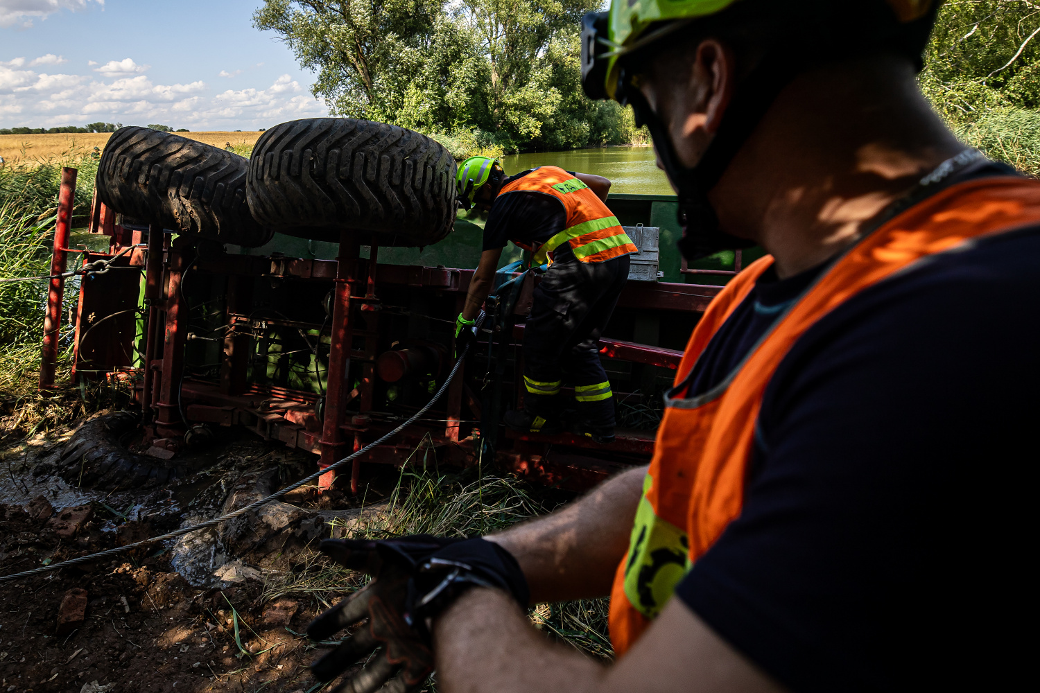 Vlkov - dopravní nehoda - 17.7.2023 14:32 hod. Vzhledem k velice měkkému a bahnitému terénu v blízkosti hráze nebylo možné, aby...