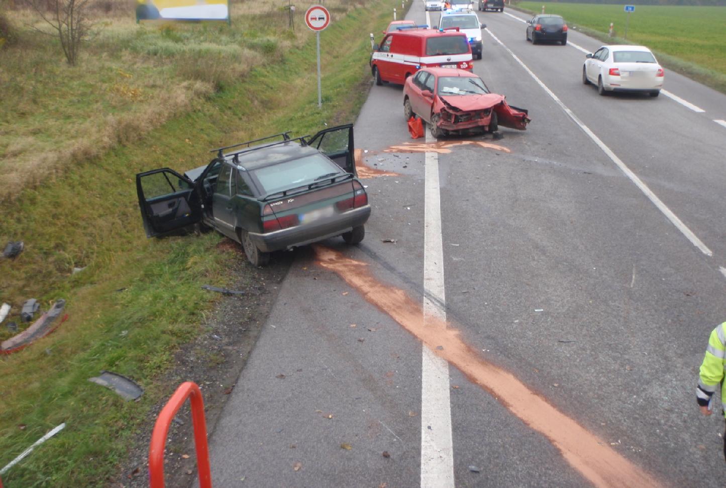Profesionální jednotky z Nové Paky a Jičína právě zasahují u dopravní nehody dvou osobních automobilů. Při střetu byly zraněny tři osoby, z toho jednu museli hasiči z vozidla vyprostit.