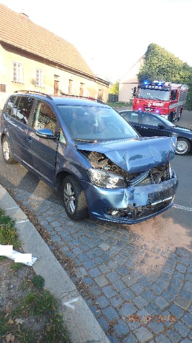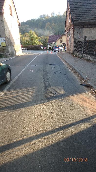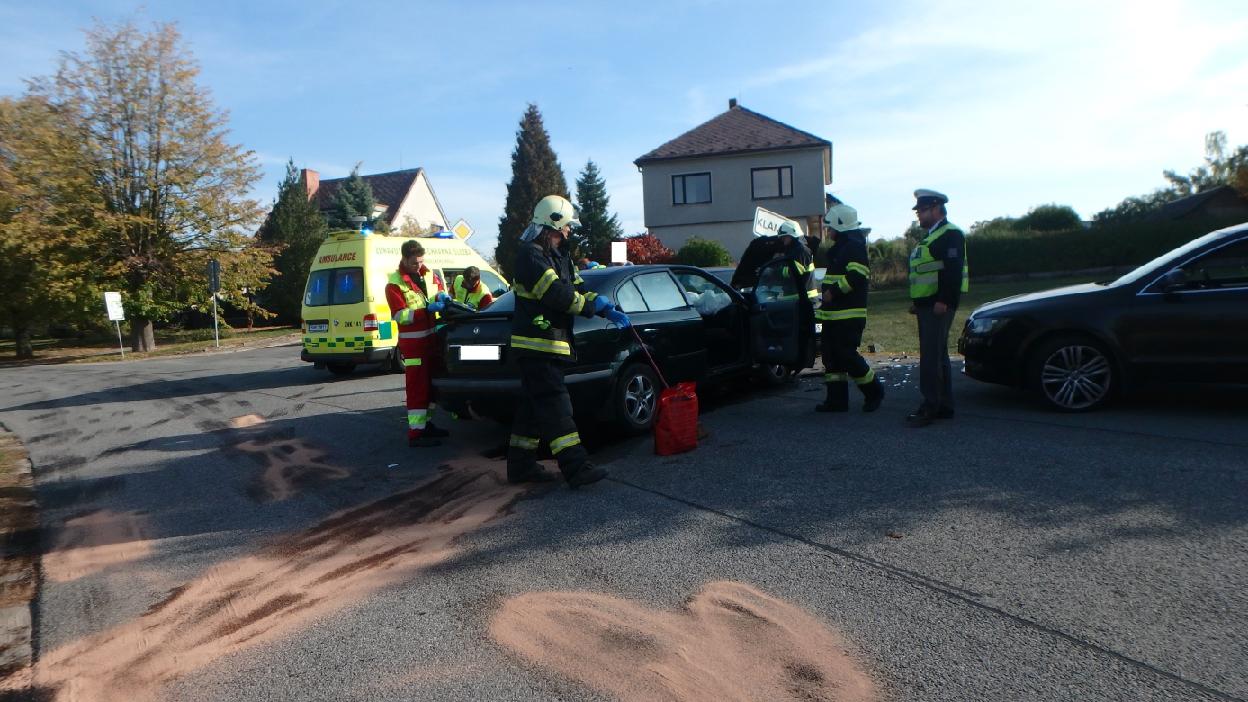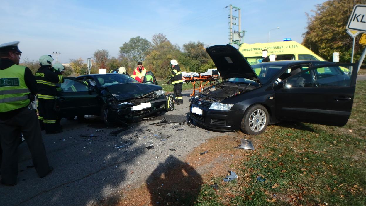 Profesionální hasiči z Nového Bydžova a dobrovolní hasiči z Chlumce nad Cidlinou vyjeli odpoledne ke střetu dvou osobních vozidel k obci Klamoš. Jeden řidič utrpěl zlomeninu dolní končetiny. Hasiči jej vytáhly z vozu a předali do péče zdravotnické záchranné služby. Hasiči provedli na vozech protipožární opatření. Uniklý olej zasypaly jednotky sorbentem, odstavily vozidla mimo vozovku a uklidily komunikaci.