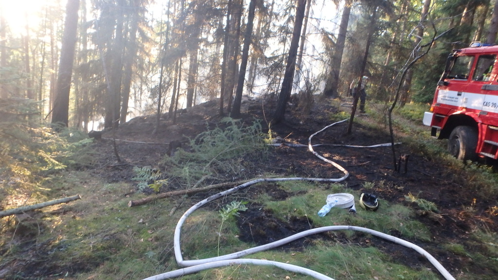 druhý poplachový stupeň. Oznamovatel měl vidět kouř vycházející z lesa. Hasiči nejprve provedli průzkum, aby zjistili, odkud kouř vychází a jaká je příčina.