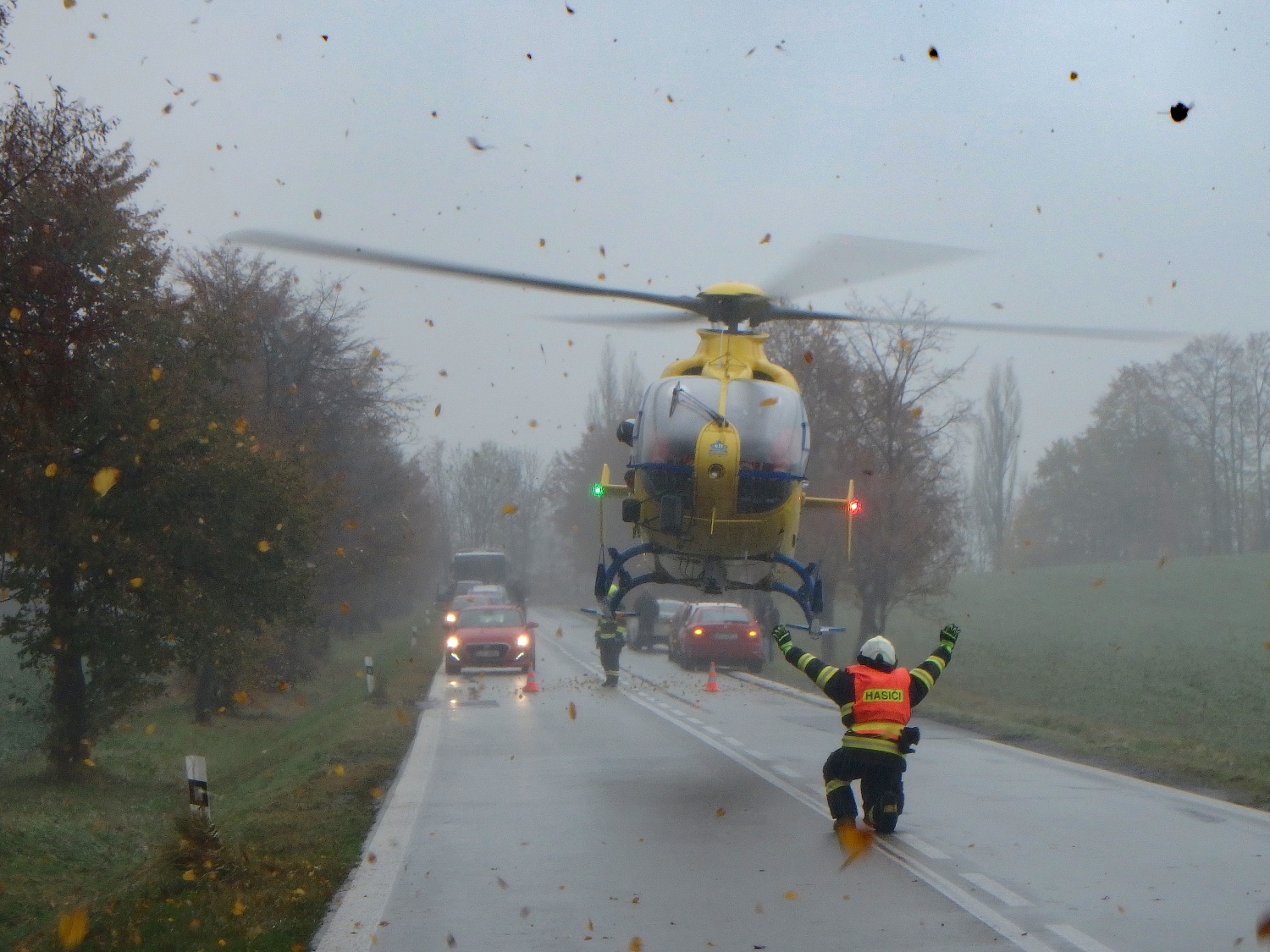 Dvě jednotky hasičů zasahovaly dnes odpoledne u dopravní nehody osobního automobilu, který havaroval na silnici č. 11 u Rybné nad Zdobnicí ve směru na Žamberk. Vozidlo vyjelo mimo komunikaci, kde narazilo do stromu. Cestoval v něm jeden člověk, z auta byl vytažen před příjezdem jednotek na místo události. Hasiči poskytli zraněnému první předlékařskou pomoc, u havarovaného automobilu jej zajistili, zafixovali do vakuové matrace a vynesli ho z blátivého mokrého příkopu k vozidlu zdravotnické záchranné služby. Jednotky dále zajistily místo události, zabezpečily nabouraný automobil a následně také připravily místo pro přistání vrtulníku letecké záchranné služby, který byl pro pacienta vyslán. Hasiči navedli vrtulník na přistání přímo na hlavní komunikaci, ta byla po nezbytnou dobu neprůjezdná. Jednotky pomohly s transportem zraněné osoby do vrtulníku a následně předaly místo zásahu policistům. Na místě zasahovali profesionální hasiči z Rychnova nad Kněžnou a JSDH Kostelec nad Orlicí.