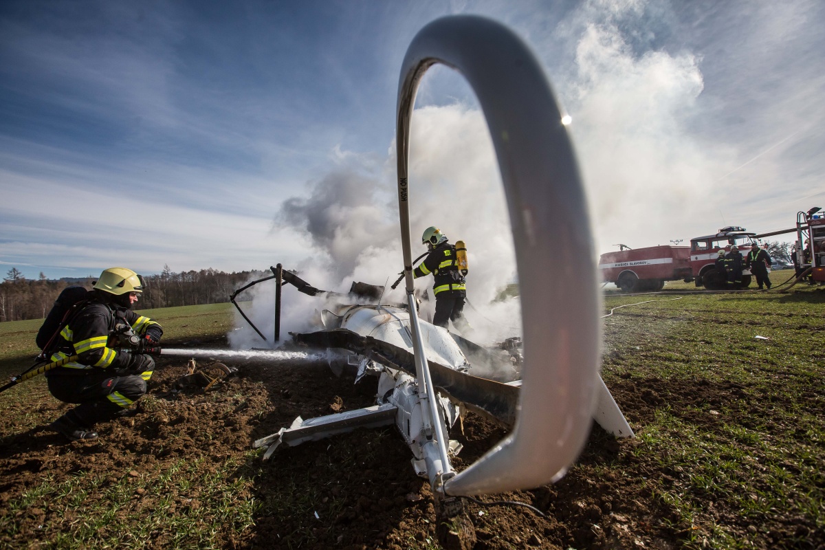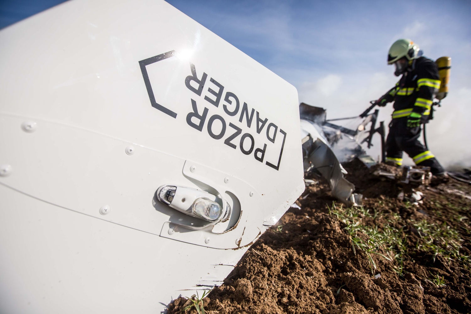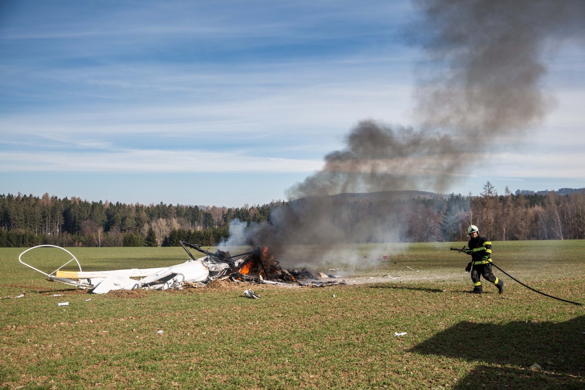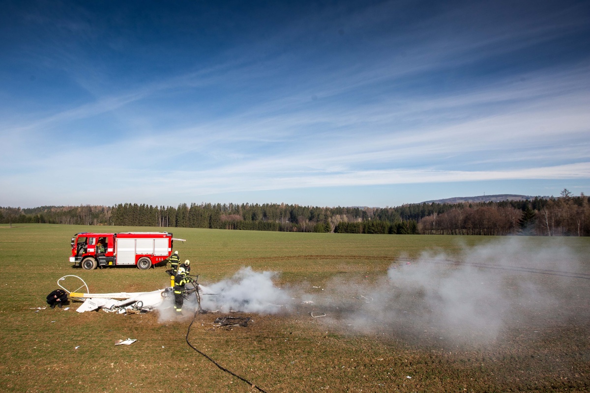 U Slavoňova na Náchodsku se zřítil vrtulník, po pádu začal hořet, nehodu nepřežily vě osoby.
