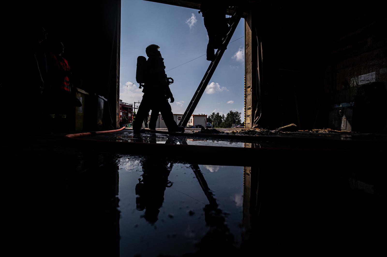 U požáru haly zasahovalo sedm jednotek hasičů