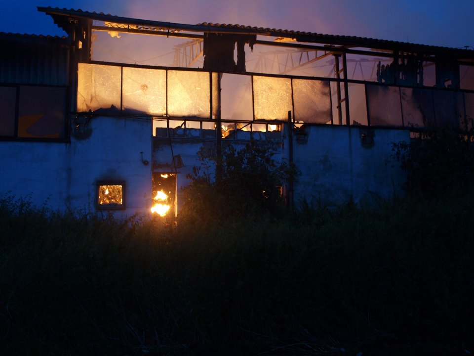 Na místo vyjeli profesionální hasiči z Jičína a Nové Paky a dále celkem devět jednotek sboru dobrovolných hasičů. Kvůli rozsahu požáru byl vyhlášen třetí poplachový stupeň. Průzkumem na místě hasiči zjistili, že se jedná o požár dvou částečně zděných skladovacích hal o půdorysných rozměrech asi patnáckrát čtyřicet metrů, naplněných slámou a dále o požár nedalekého pole na ploše několika hektarů. Na místě se již také nacházela Policie České republiky, jejíž příslušníci během krátké chvíle zadrželi muže, který údajně požár objektů i pole úmyslně založil.