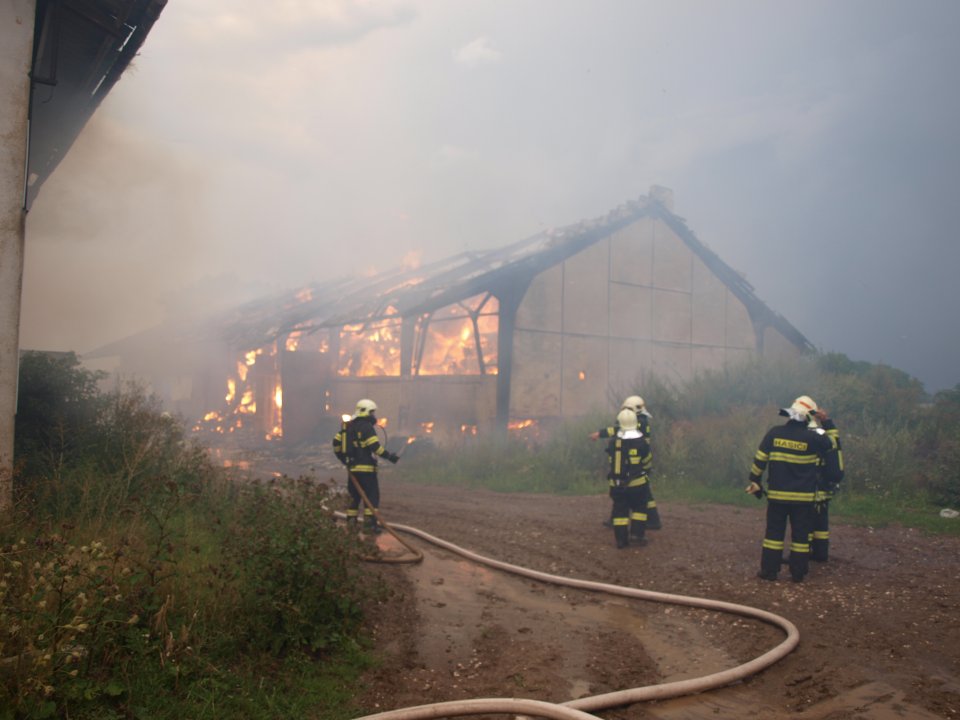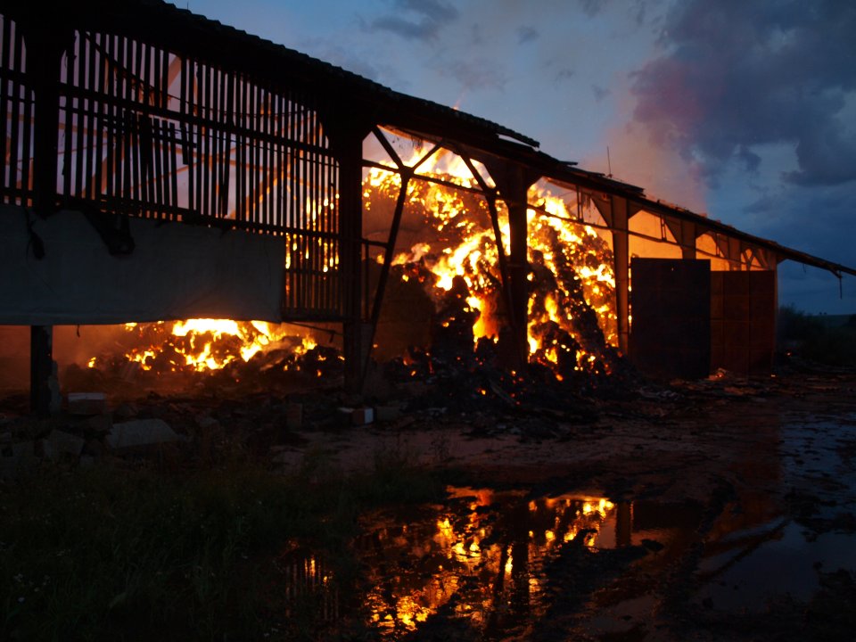 V neděli 30.7. kolem šesté hodiny odpoledne vypukl ve dvou hospodářských objektech a na přilehlém poli v obci Podhradí – Čejkovice nedaleko Jičína požár.