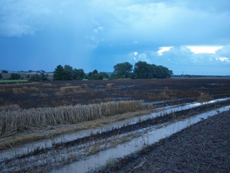Zcela dohašen byl oheň až v pozdních večerních hodinách. Na místě zůstaly jednotky sboru dobrovolných hasičů, které byly pověřené dozorem nad požářištěm a také preventivně obhlížely okolí, zda nedochází k šíření nežádoucího hoření. Vhod přišel v tomto ohledu také déšť, který kolem půl osmé večer pokropil místní krajinu vyprahlou po celodenním tropickém dni.