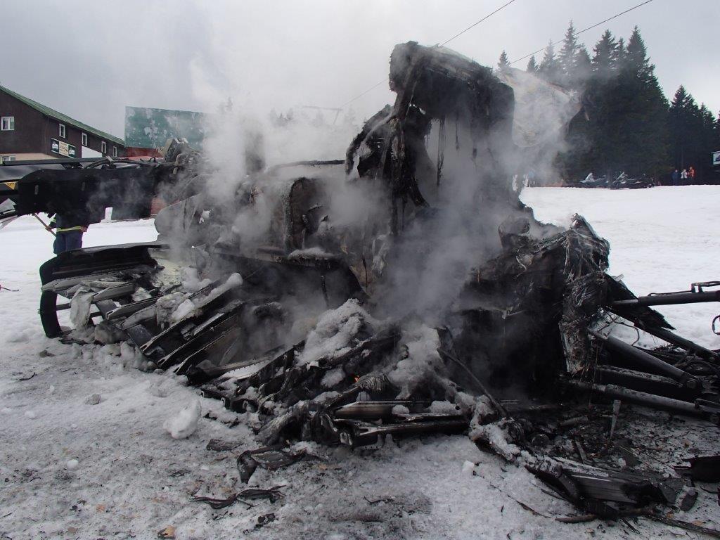 Hasiče a veškeré potřebné vybavení na likvidaci požáru vyvezli na místo policejní skútry a rolba místního občana. Při jejich příjezdu byla celá rolba v plamenech a poslední fázi hoření. Oheň se snažil zlikvidovat sám řidič, který použil jako hasební materiál sníh. Hasiči využili na lokalizaci požáru všechny dostupné síly a prostředky a hasili sněhem i pomocí sněžné frézy. Plameny dostali pod kontrolu v 17:17 hodin a uhasili během další hodiny. Požár s největší pravděpodobností způsobil řidič, který s rolbou nacouval do elektrické přípojky zařízení pro zasněžování. Tím došlo k vytržení, následnému zkratu a vznícení provozních kapalin. Hmotná škoda na zničeném stroji byla předběžně odhadnuta na sedm milionů korun. Při požáru nebyl nikdo zraněn.