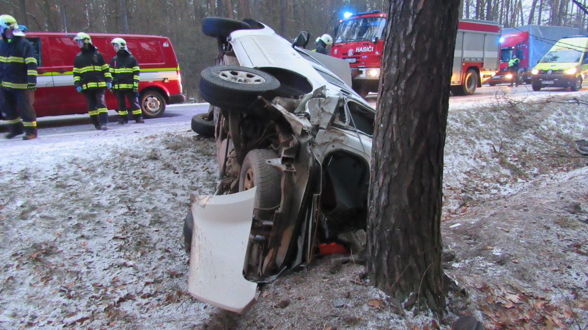 Profesionální hasiči z centrální hradecké stanice a dobrovolná jednotka z Třebechovic pod Orebem zasahovali u dopravní nehody dodávky v části Petrovičky na silnici I/11. Dodávka vylétla ze silnice a převrátila se přes střechu. Dvě osoby byly při nehodě zraněny, do péče si je převzala zdravotnická záchranná služba. Ve voze zároveň cestovali dva psi, jeden z nich nehodu nepřežil.