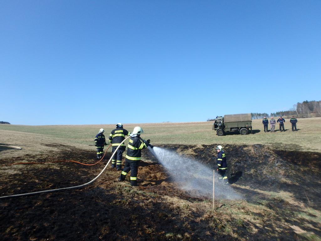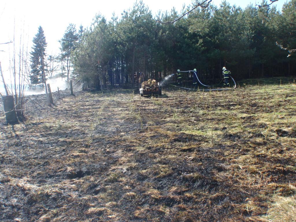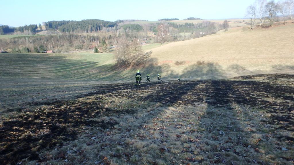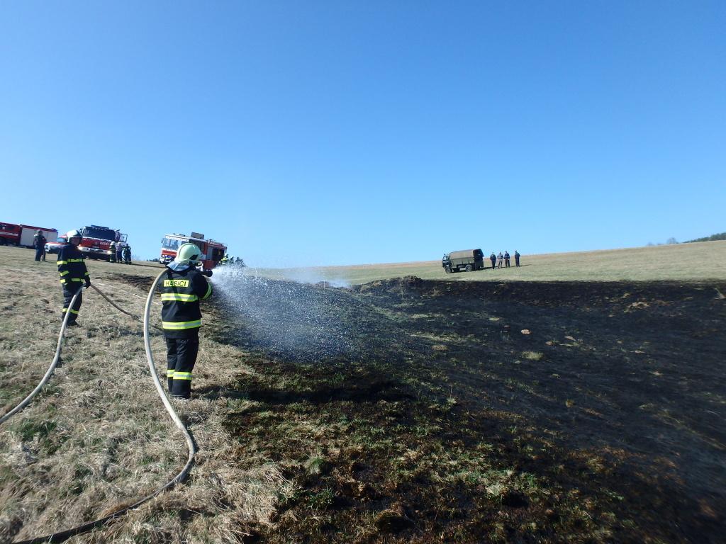 Profesionální hasiči z Trutnova a dobrovolné jednotky z Havlovic, Úpice a Libňatova likvidovali po 15. hodině požár suchého travního porostu na ploše asi 50x70 metrů.