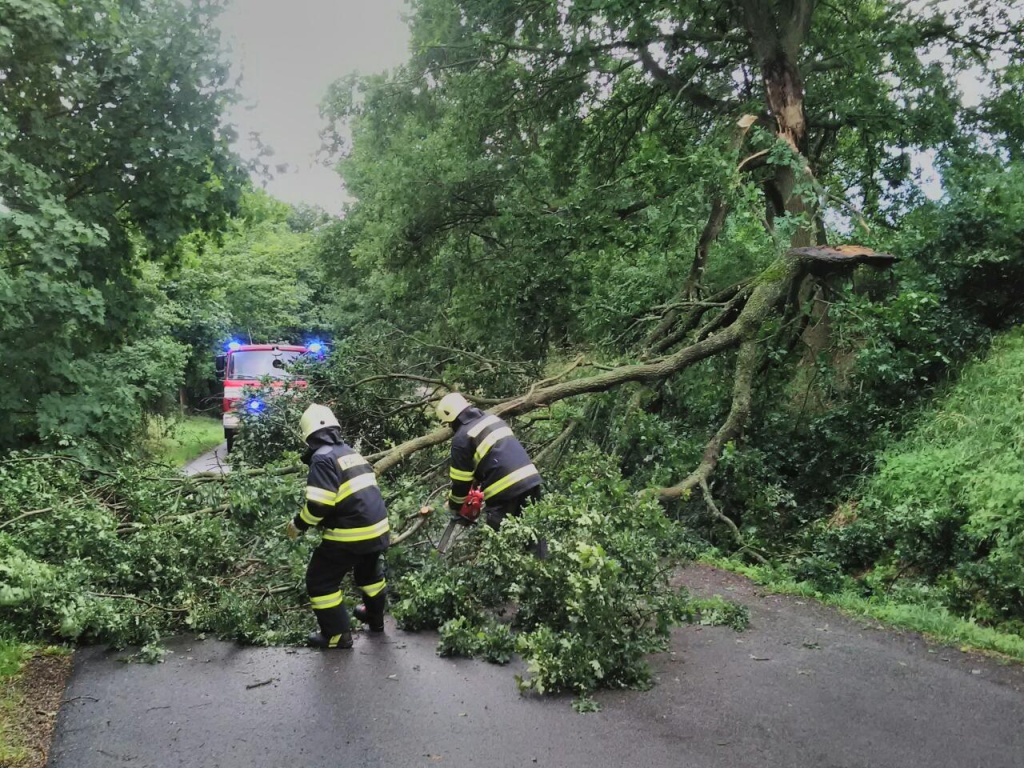 Ve 34 případech odstraňovali hasiči popadané stromy, které blokovaly nejčastěji komunikace, chodníky nebo cyklostezky. Ve Vidochově hrozil strom pádem na rodinný dům, v Kvasinách spadl na obytný přívěs. Mimo to ale také jednotky odstraňovaly převrácený velký stan ve Dvoře Králové nad Labem nebo hasily doutnající strom zapálený bleskem v Černém Dole na Vrchlabsku. Naštěstí se všechny události obešly bez zranění.