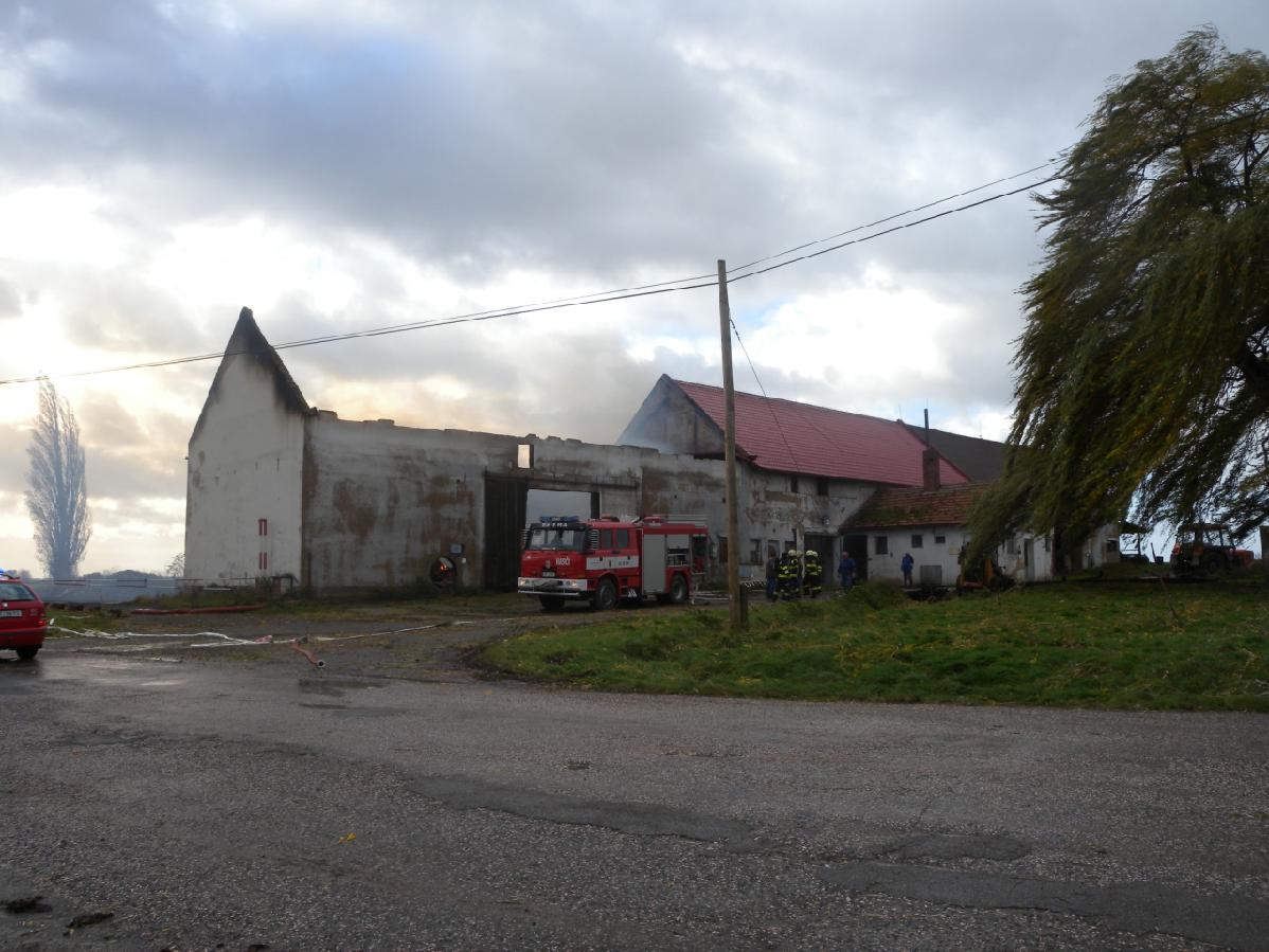 Hasiči prvotním průzkumem zjistili, že se jedná o požár zděné skladovací haly o půdorysných rozměrech asi osmkrát dvacet metrů naplněné senem, která přiléhala na budovu kravína, ve kterém se v době vzniku požáru nacházelo přibližně dvě stě jalovic. Další přistavěná část budovy byla také naplněna senem a požárem byla dosud nezasažena.