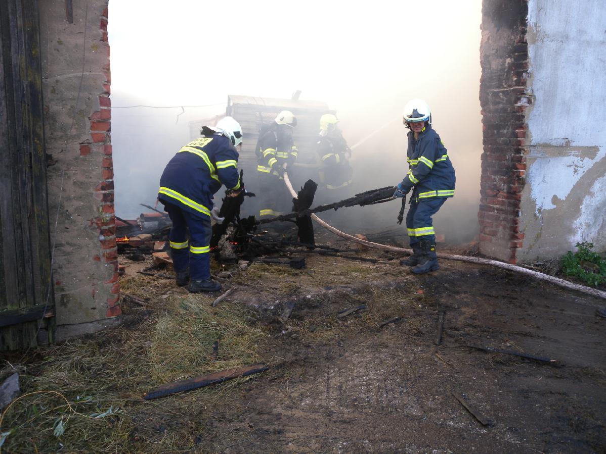Hasiči ve spolupráci s energetiky nechali objekt odpojit od přívodu elektrické energie a neprodleně zahájili hasební práce. Nasadili celkem šest vodních proudů a zaměřili se na zamezení šíření požáru na přilehlý kravín a další část budovy se senem, což se vhodně zvolenou taktikou zásahu a efektivním hašením podařilo. Celý zásah probíhal za použití dýchací techniky. Protože se ve spolupráci s majitelem vyskladňovalo z haly velké množství neshořelého sena a dohledávala se skrytá ohniska hoření, byl zásah ukončen až v odpoledních hodinách.