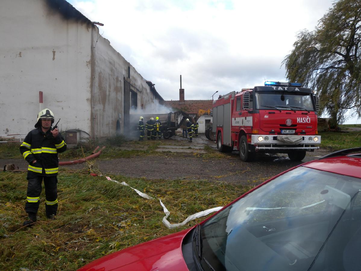 Během větrné neděle 29.10. 2017 řešili hasiči v Královéhradeckém kraji také jeden požár s velkou materiální škodou. Jednalo se o požár skladovací haly se senem v obci Robousy na Jičínsku.