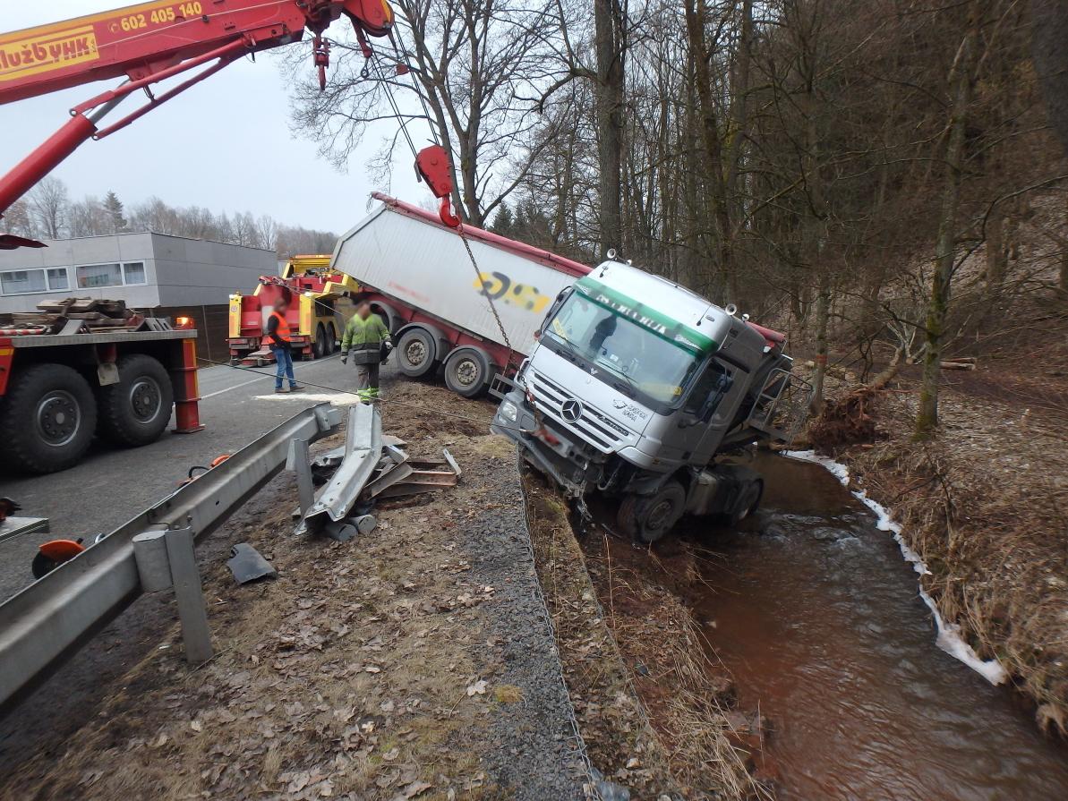 V Rudníku sjel kamion do potoka. Do vody uniklo asi 150 litrů nafty.