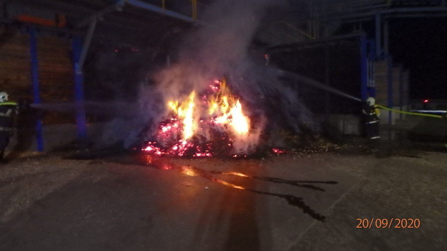 Tři jednotky hasičů likvidovaly v nedělních ranních hodinách požár štěpky v ulici Kvasinská. Štěpka byla na kupě o rozměrech asi 6x6 m, na likvidaci nasadili hasiči několik vodních C proudů. Doutnající kupu bylo nutné rozhrnout pomocí nakladače, aby mohli hasiči zlikvidovat všechna ohniska, navíc došlo vlivem požáru k rozpálení a poškození konstrukce a dopravníku. Vyvezenou štěpku jednotky řádně prolily vodou, zkontrolovaly pomocí termokamery, po 7. hodině ranní ohlásil velitel zásahu likvidaci požáru. Škoda, kterou požár způsobil, byla předběžně vyčíslena na 300 tisíc korun, další hodnoty představující asi 800 tisíc korun byly uchráněny. Na místě zasahovali profesionální hasiči ze stanice Rychnov nad Kněžnou, JSDH Solnice a HZSP Škoda Kvasiny.