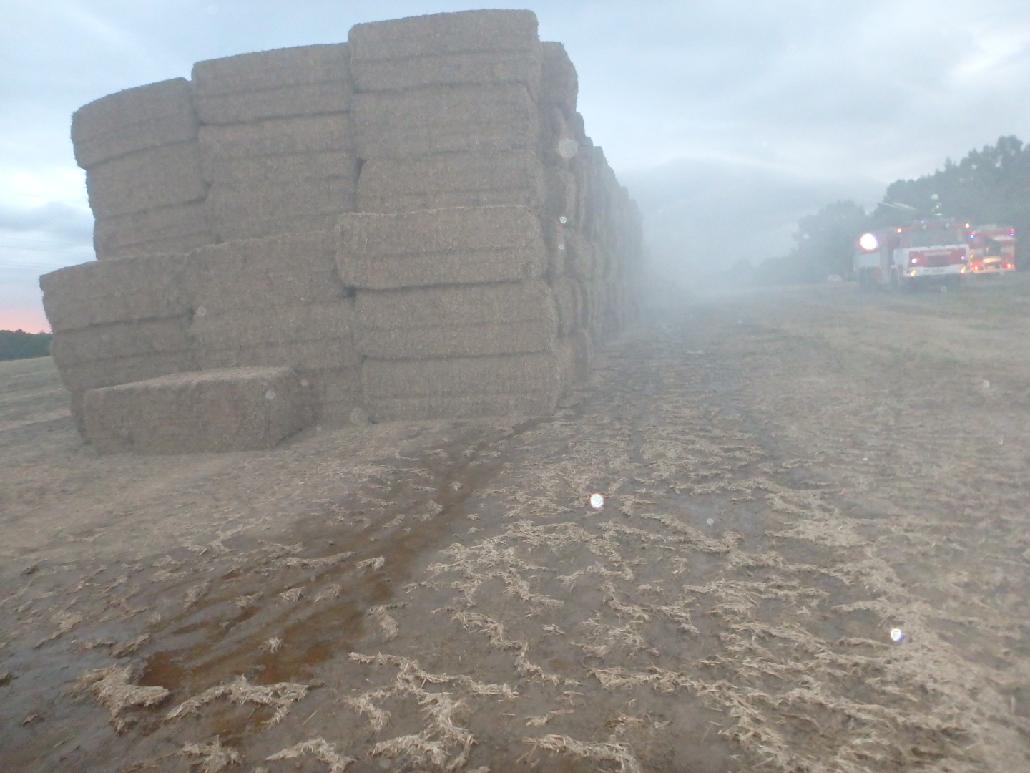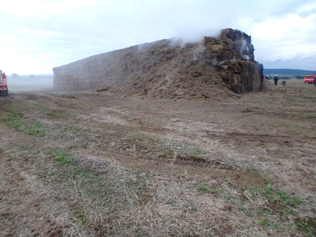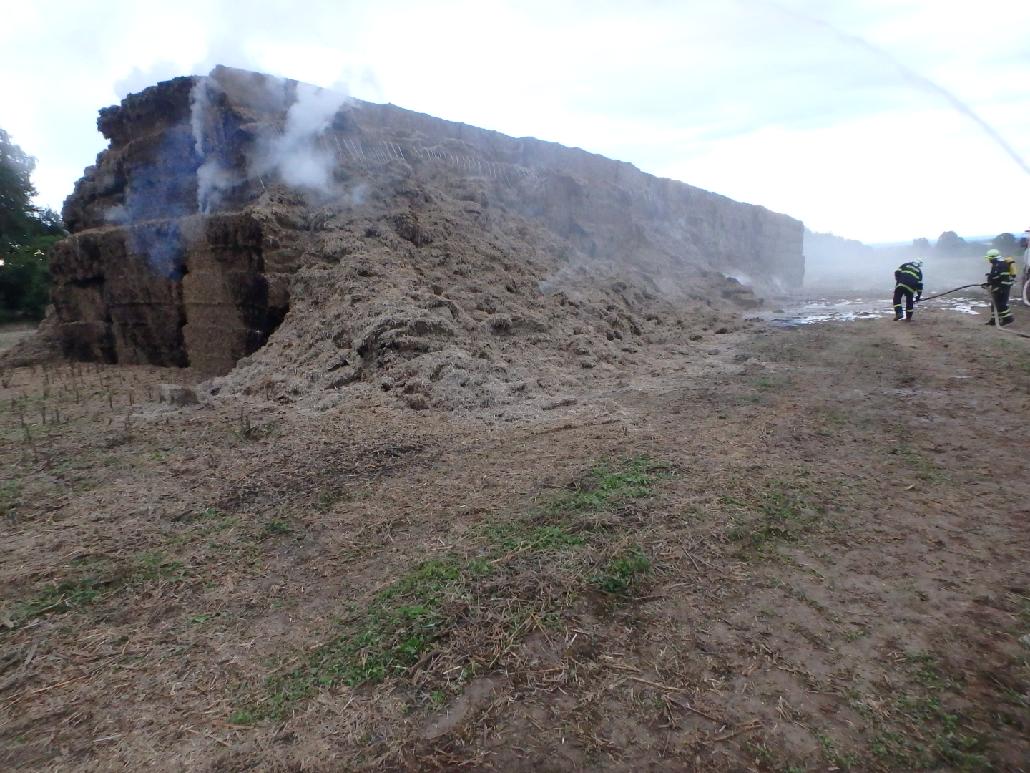 Při příjezdu na místo bylo zjištěno, že hoří stoh o půdorysných rozměrech zhruba šedesátkrát osm metrů. Stoh byl složený ze zhruba sedmi stovek hranatých balíků, přičemž jeden balík měl velikost přibližně tří metrů krychlových. Hasiči zahájili hašení za pomoci vodních proudů. Doprava vody na místo byla zajištěna kyvadlovou dopravou, čerpací bod byl zřízen v obci Zábřezí - Řečice. Zásah byl ztížený nepříznivými povětrnostními podmínkami, kdy na místě foukal nárazový vítr, který napomáhal šíření požáru.