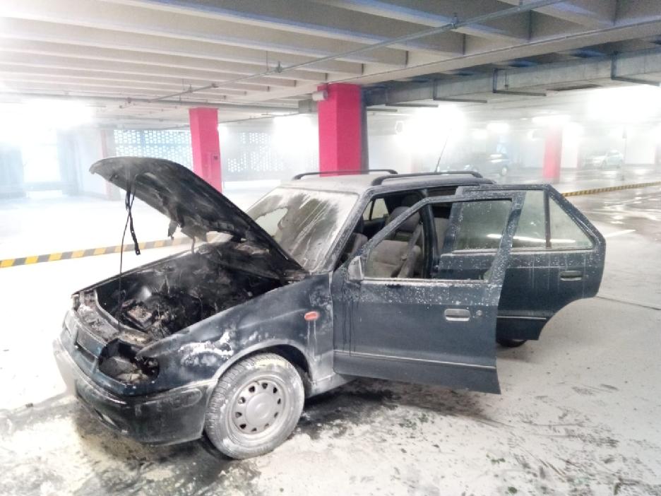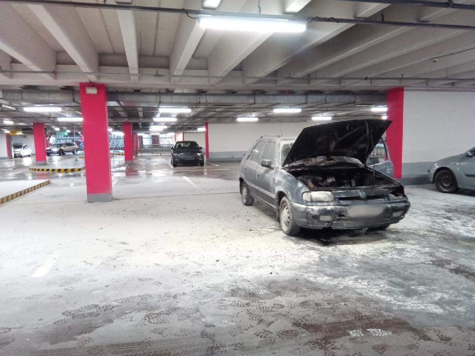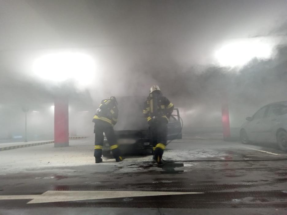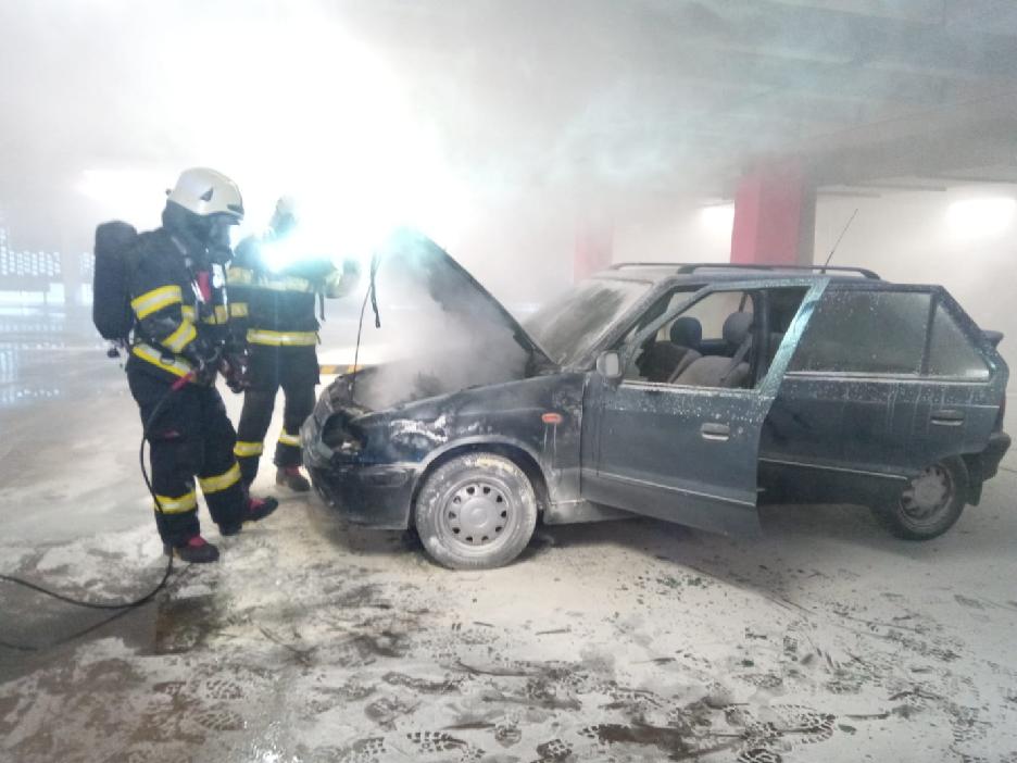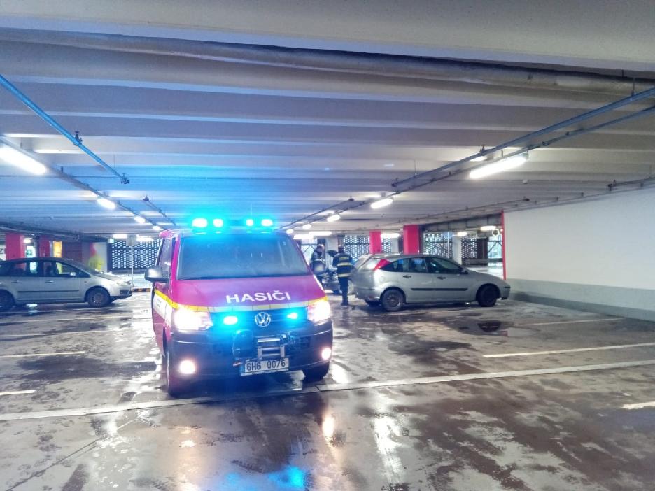 V druhém nadzemním podlaží garáží nákupního centra na Brněnské ulici začal hořet osobní automobil značky Škoda Felicia (rok výroby 1995). K zahoření došlo v motorové části vozu a už při oznámení na tísňovou linku byly vidět plameny.