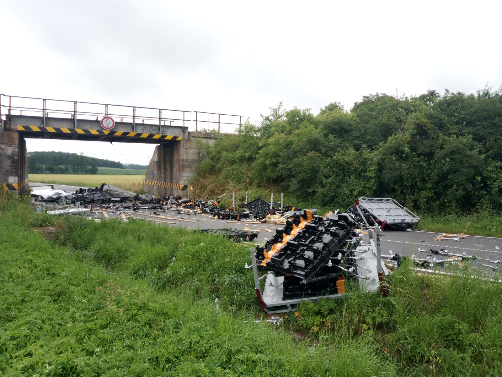 Nehoda kamionu, který narazil vrchní částí návěsu do železničního mostu u Očelic, zastavila na nezbytně nutnou dobu provoz nejen na silnici č. 298, ale také na železnici. Po posouzení technického stavu železnice byl provoz obnoven. Nehoda se obešla bez zranění. Profesionální hasiči z Dobrušky a JSDH Opočno zajistili místo události a postarali se o úklid vozovky.