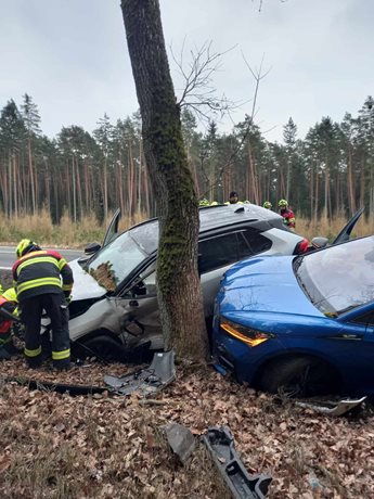 Dopravní nehoda dvou vozidel vyžadovala zásah všech složek integrovaného záchranného systému. Hasiči zajistili automobily proti požáru a policie řídila provoz. Zraněné osoby ošetřili zdravotníci.