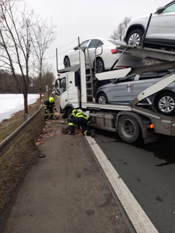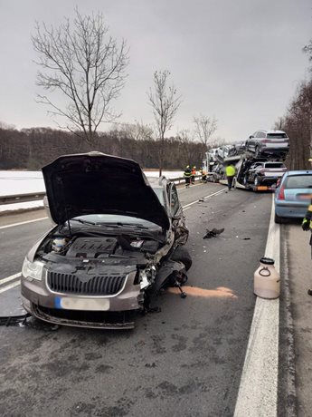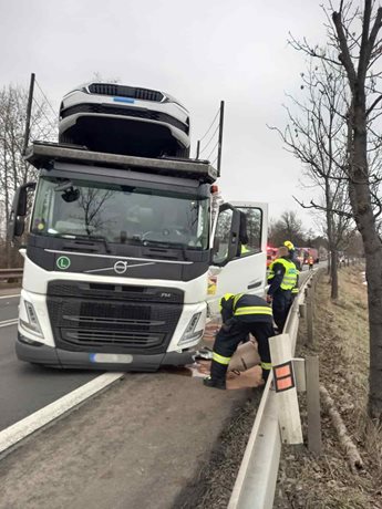 K vážné dopravní nehodě vyjely složky integrovaného záchranného systému v úterý 3. února 2026. Došlo ke střetu kamionu naloženého osobními automobily s osobním vozem. Událost si vyžádala okamžitý zásah hasičů, zdravotnické záchranné služby i policie. Podle dostupných informací byla jedna zraněná osoba předána do péče zdravotníků. Stav komunikace po nehodě neumožňoval průjezd a doprava byla v místě zcela zastavena.