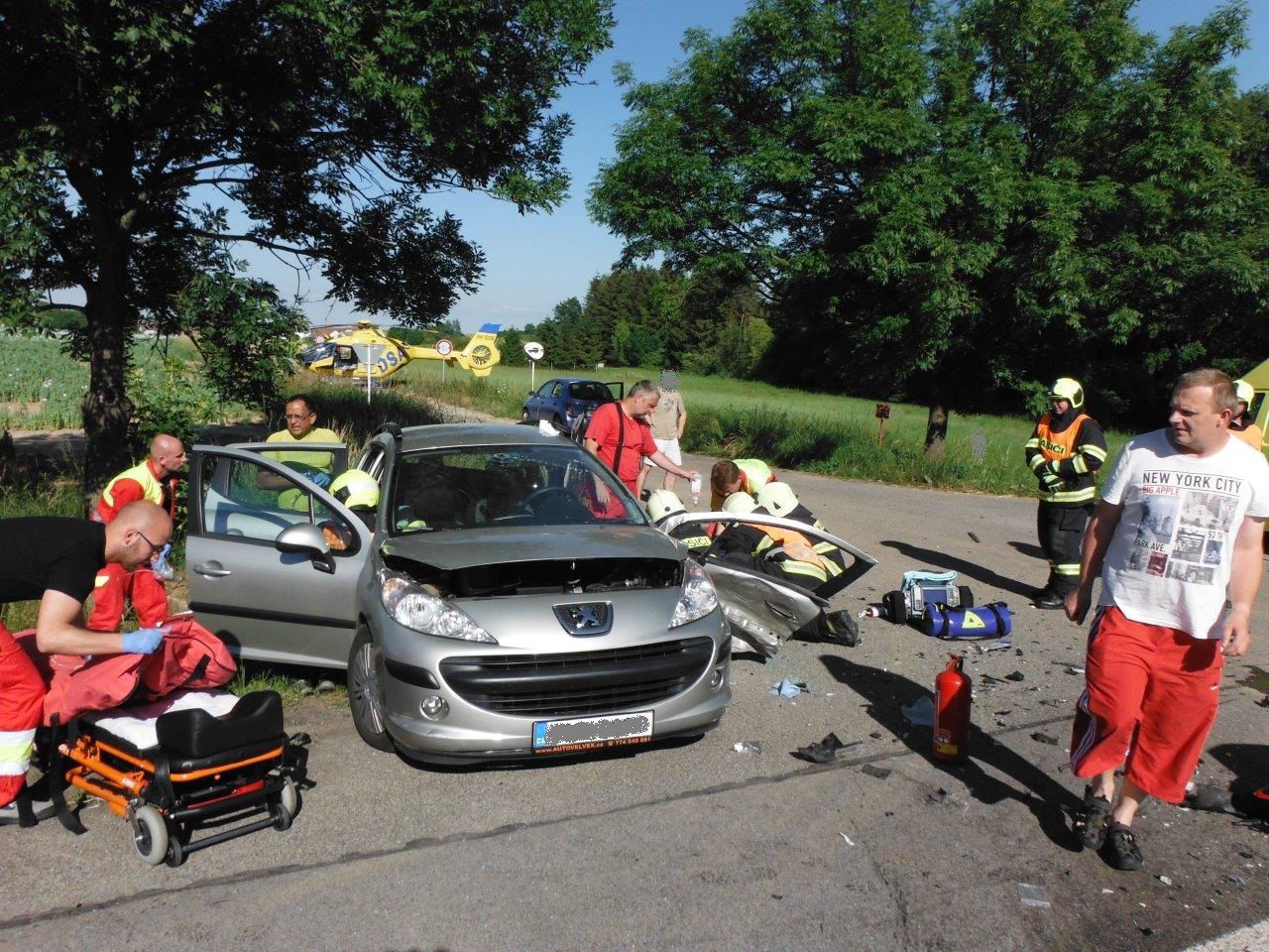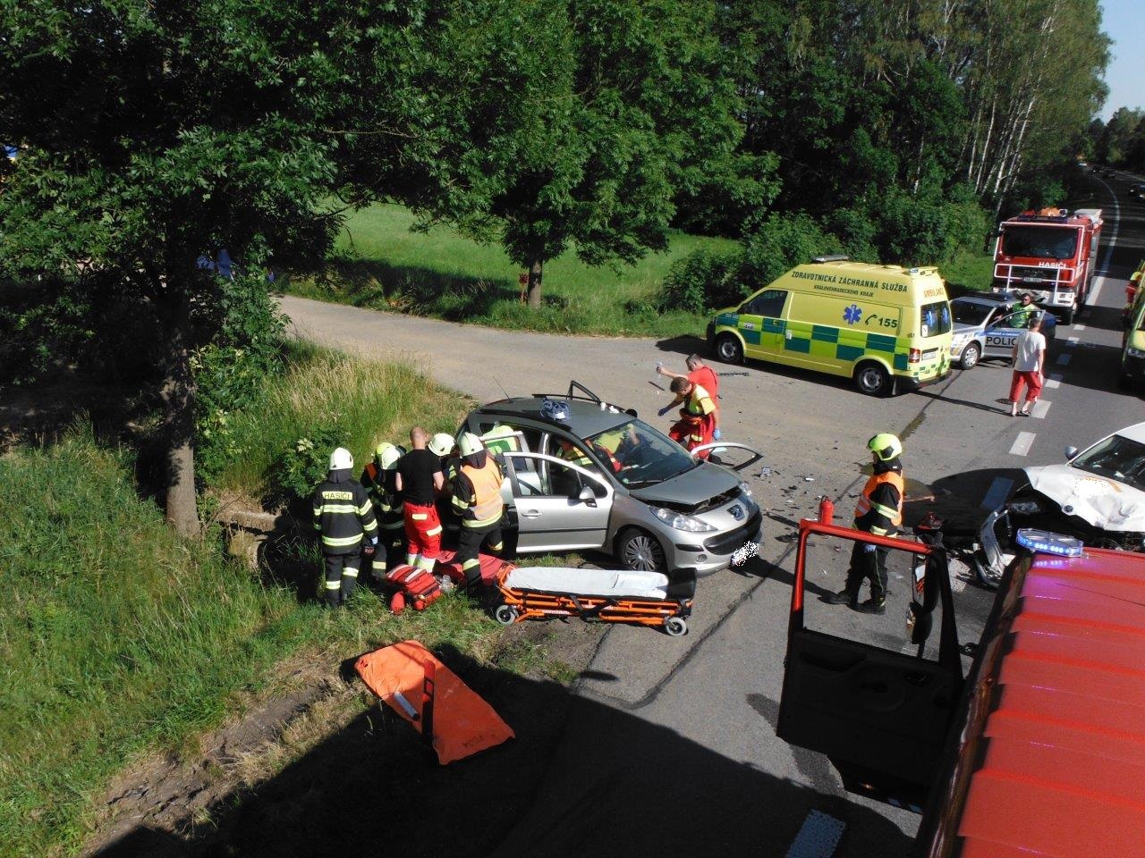 Vozidlo značky Škoda Octavia přijíždějící po hlavní silnici směrem od Hořic narazilo do boku vozidla Peugeot, které přijíždělo z vedlejší silnice. Z hasičů byl mezi prvními na místě velitel požární stanice Hořice, který shodou okolností místem projížděl. Neprodleně oznámil událost na krajské operační a informační středisko hasičů a aktivně se zapojil do řešení následků nehody.  Během následujících chvil se na místo sjeli profesionální hasiči ze stanice Hořice a ČEPRO Cerekvice a jednotka sboru dobrovolných hasičů také z Hořic. Při nehodě bylo zraněno všech pět účastníků nehody, tj. čtyři ženy a jeden muž. Hasiči provedli uvolnění osob z vraků vozidel, poskytli jim předlékařské ošetření a následně asistovali zdravotníkům. Vážně zraněnou řidičku z jednoho vozidla transportoval vrtulník letecké záchranné služby do Fakultní nemocnice v Hradci Králové, další zraněné z místa odvezly vozy zdravotnické záchranné služby.