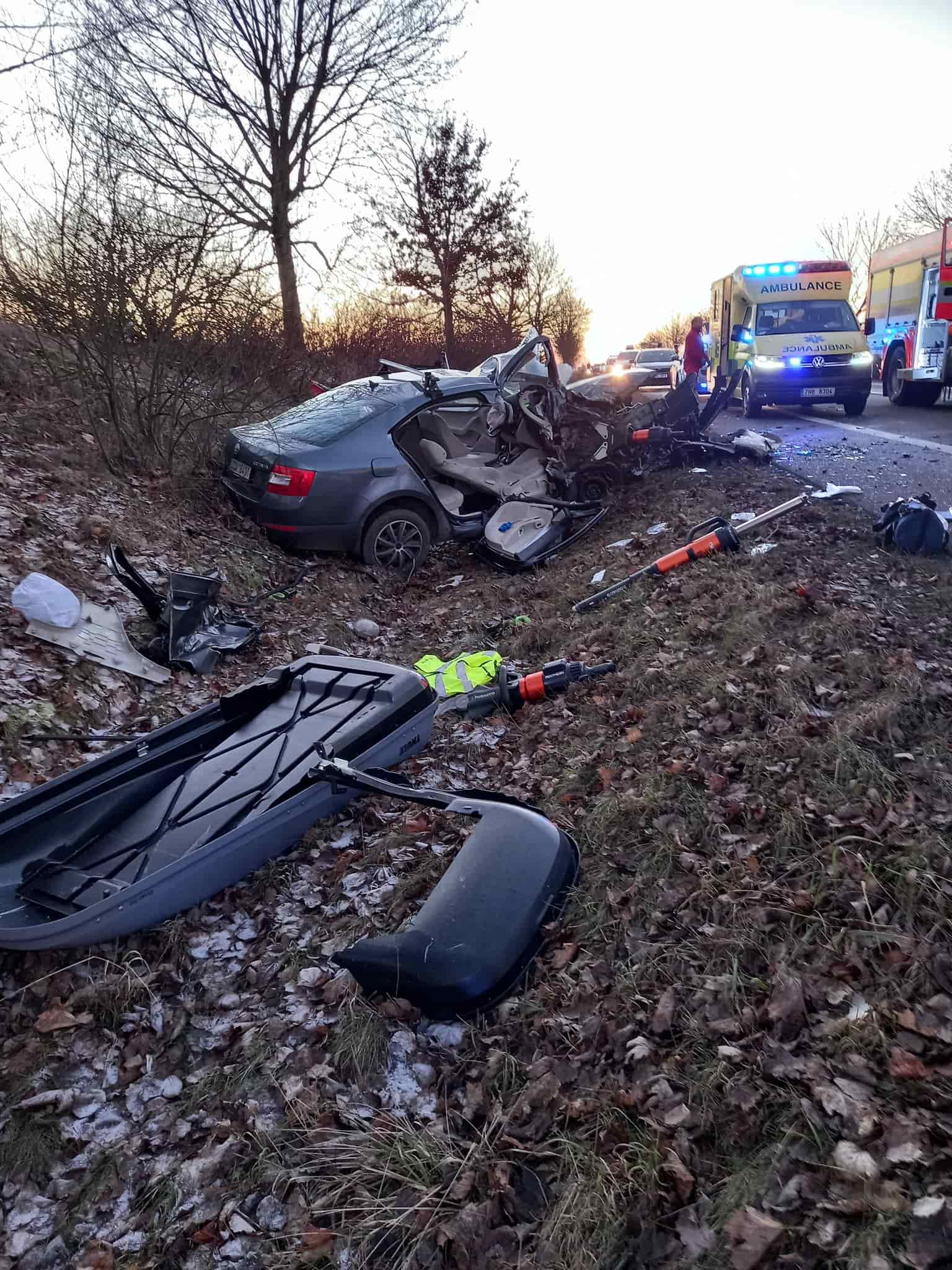 Vážná dopravní nehoda tří osobních vozidel skončila zraněním osmi lidí a úplným uzavřením silnice. Na místě zasahovali hasiči, záchranáři i policie. Jednu osobu bylo nutné vyprostit. Událost se stala v době zvýšeného rizika náledí.